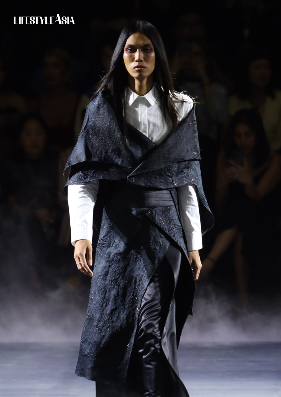 When the lights were dimmed and the New Wave beats started to play, you could already feel the greatness coming down the runway. Rajo began this collection with very ethereal designs. His mastery in fabric manipulation shone through as pieces with different textiles were layered together to create a well-thought-out look.