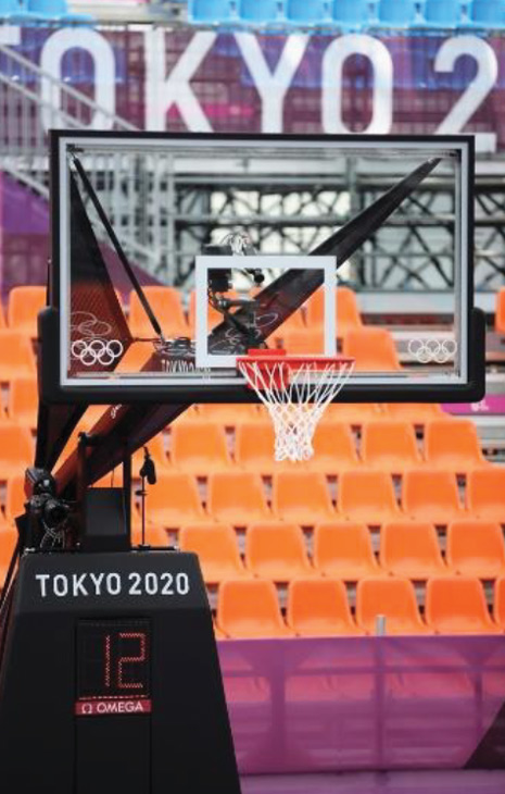 In 3×3 basketball, for example, Omega provides a regulation hoop. This is fitted with a shot clock to countdown the crucial 12 second period in which a competitor must score, or allow the opposing side possession of the ball.