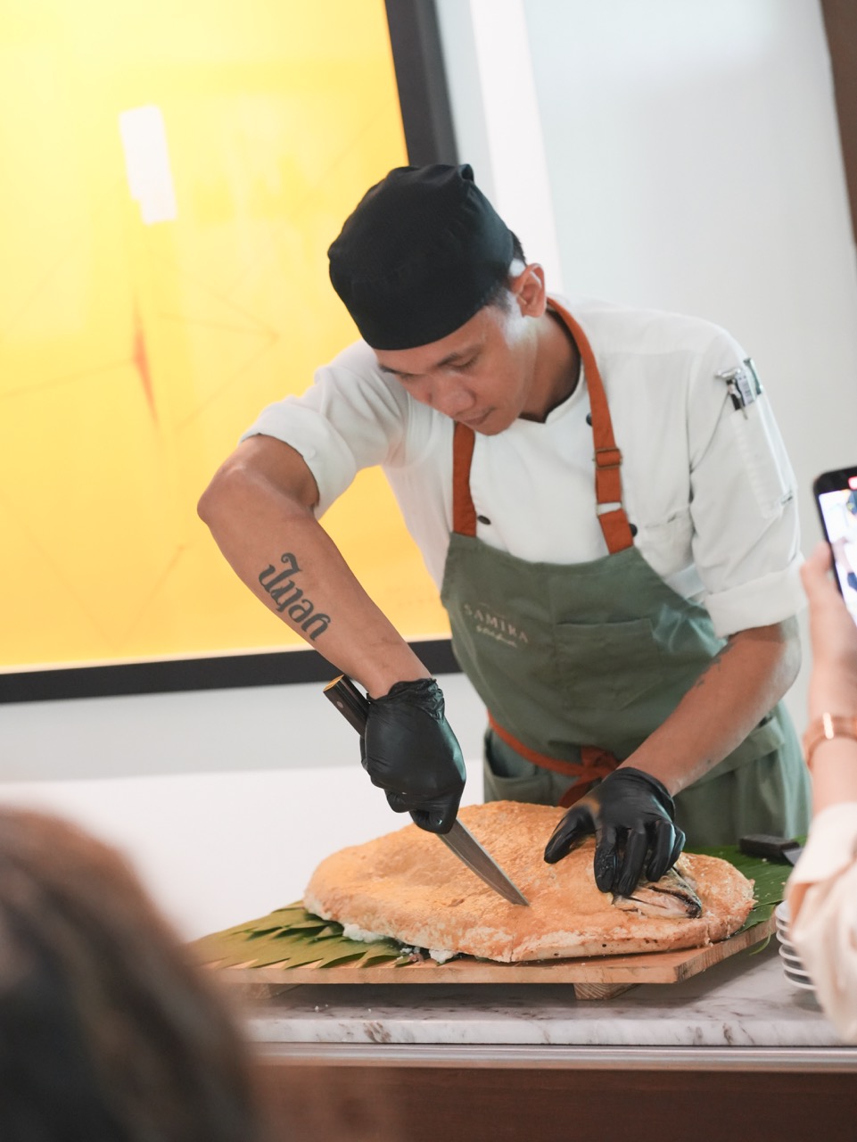 After a leisurely walk around the property, everyone headed back to the Lounge where a bespoke “Soul Menu” meticulously prepared by Executive Chef Chris Leaning awaited. The holistic dining experience began with a flavorful mushroom and walnut pâté (served with crusty sourdough straight out of the oven) and a light essence of chicken tinola broth with herb and lemongrass dumplings. An impressive 12 pound-salt encrusted whole salmon then emerged and was served table side. The meal was complemented by a Tagaytay salad station with locally grown organic vegetables.