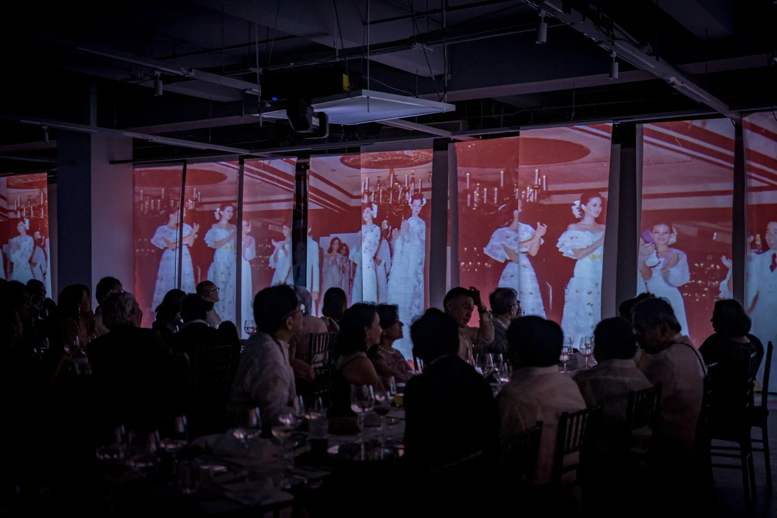 The evening’s concept, envisioned by designer-artist Tony Gonzales, transformed one of the M Museum’s galleries into a theater. Floating paper panels created screens for a unique video presentation, with video production by Enzo Razon, Dinesh Mohani, and Gio Panlilo of Tarzeer Pictures.
