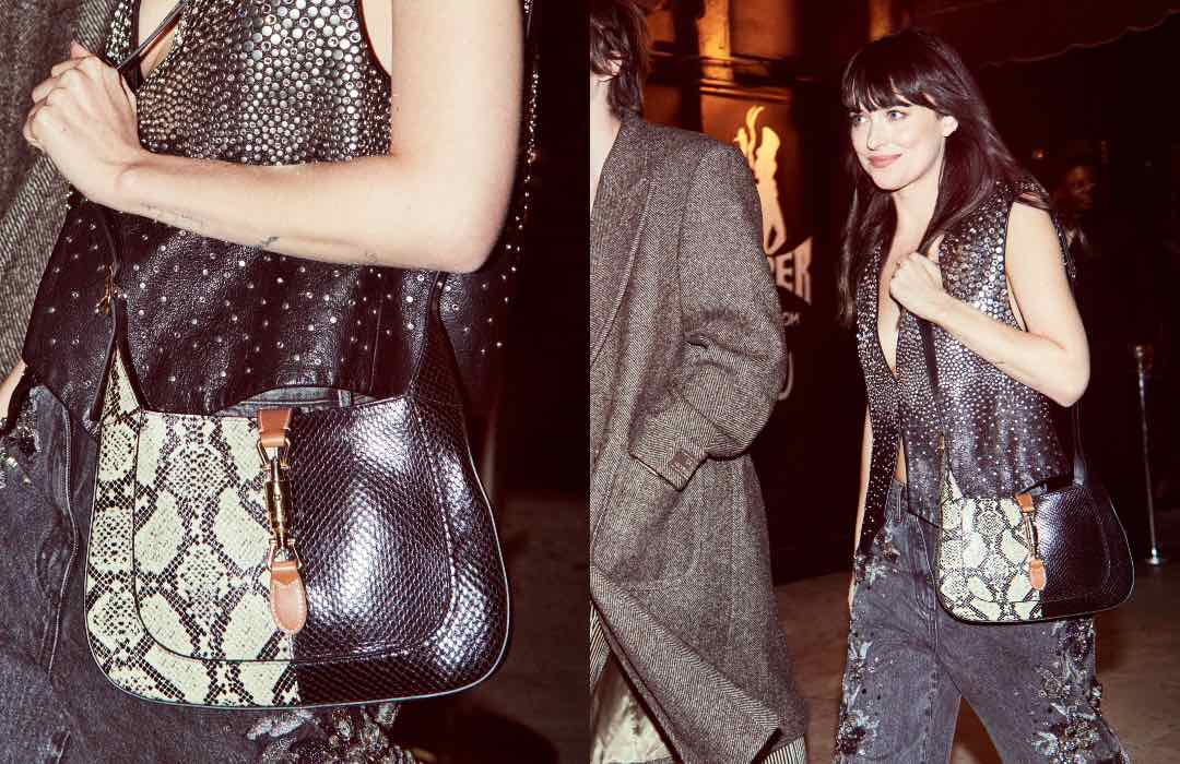 The new Jackie 1961 campaign features actress Dakota Johnson, a longtime brand ambassador for Gucci.
