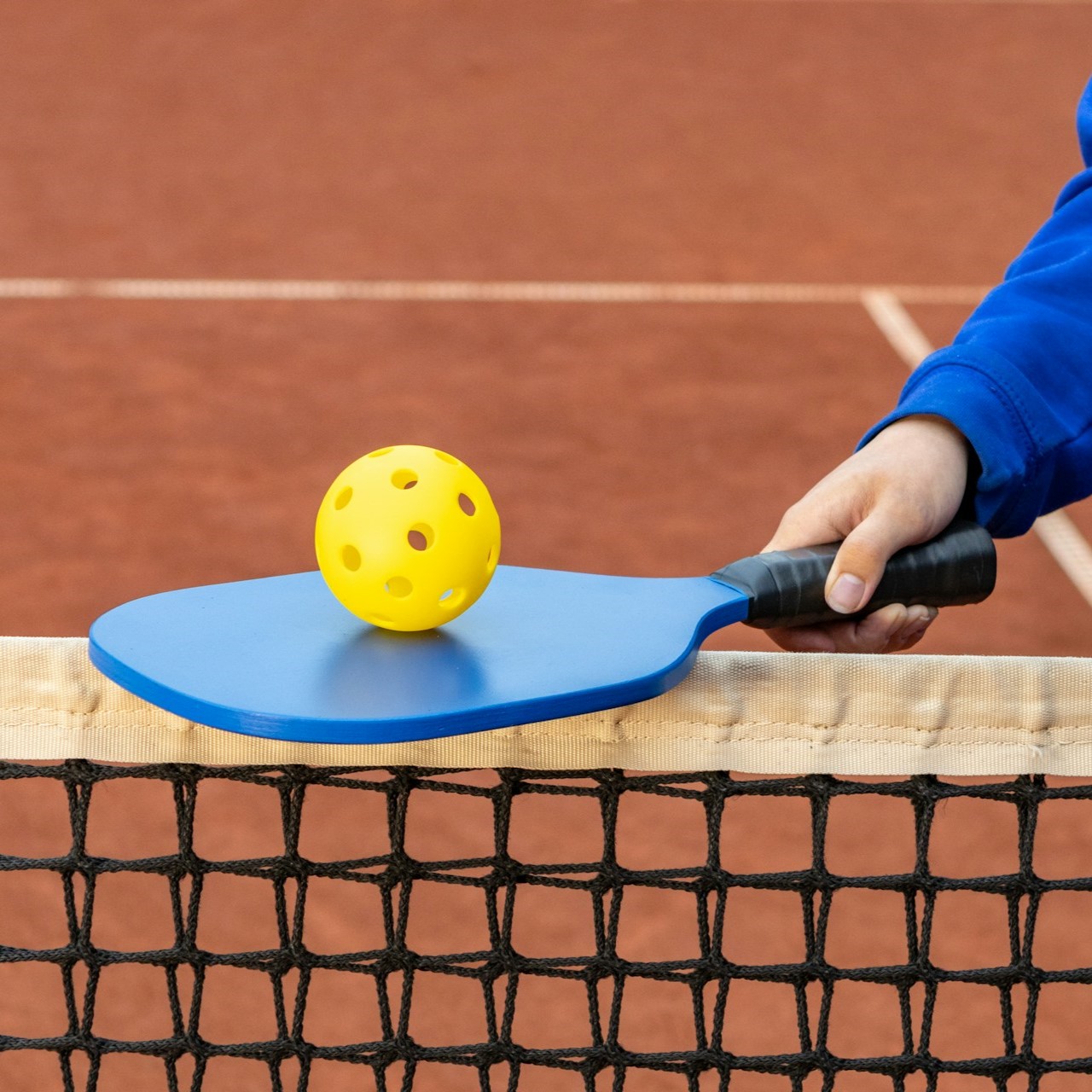 Like a ping pong paddle, the pickleball racket is light and small, so even children can wield it with prowess. The plastic ball contains holes that prevent it from flying too fast or bouncing too much.
