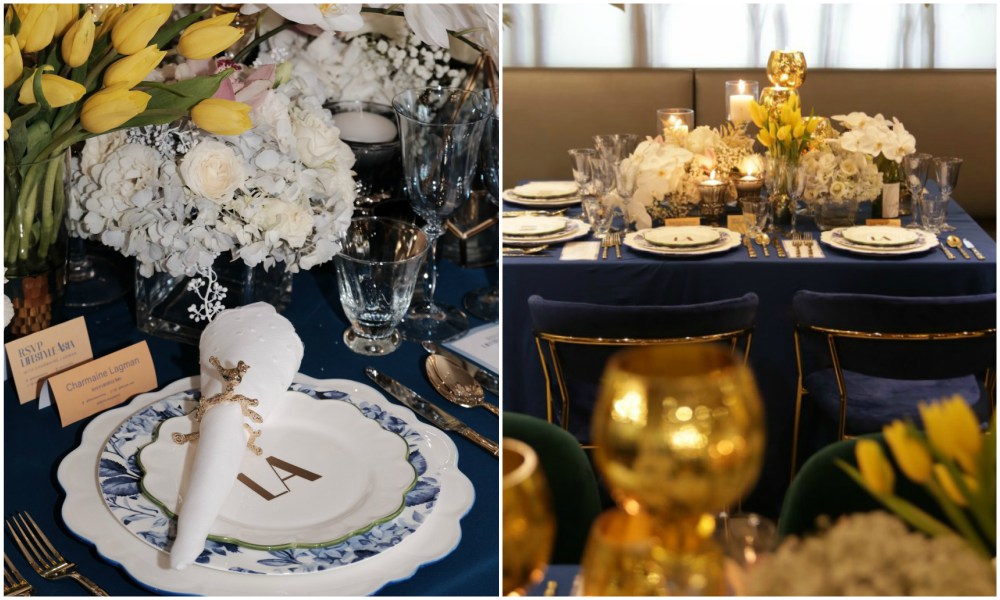 The event styling of Randy Lazaro made the celebration a unique and elegant affair. Guests sat around the beautiful tablescape of Casa Luxia covered in deep blue fabrics. To add accents, there are clear candelabras and glasses holding miniature candles. In-between were pristine floral arrangements, the yellow tulips add a warm contrast against the rest of the white flowers. The set up may be simple yet it certainly made a cheerful ambiance as Pinot Manila served its 5-course meal.