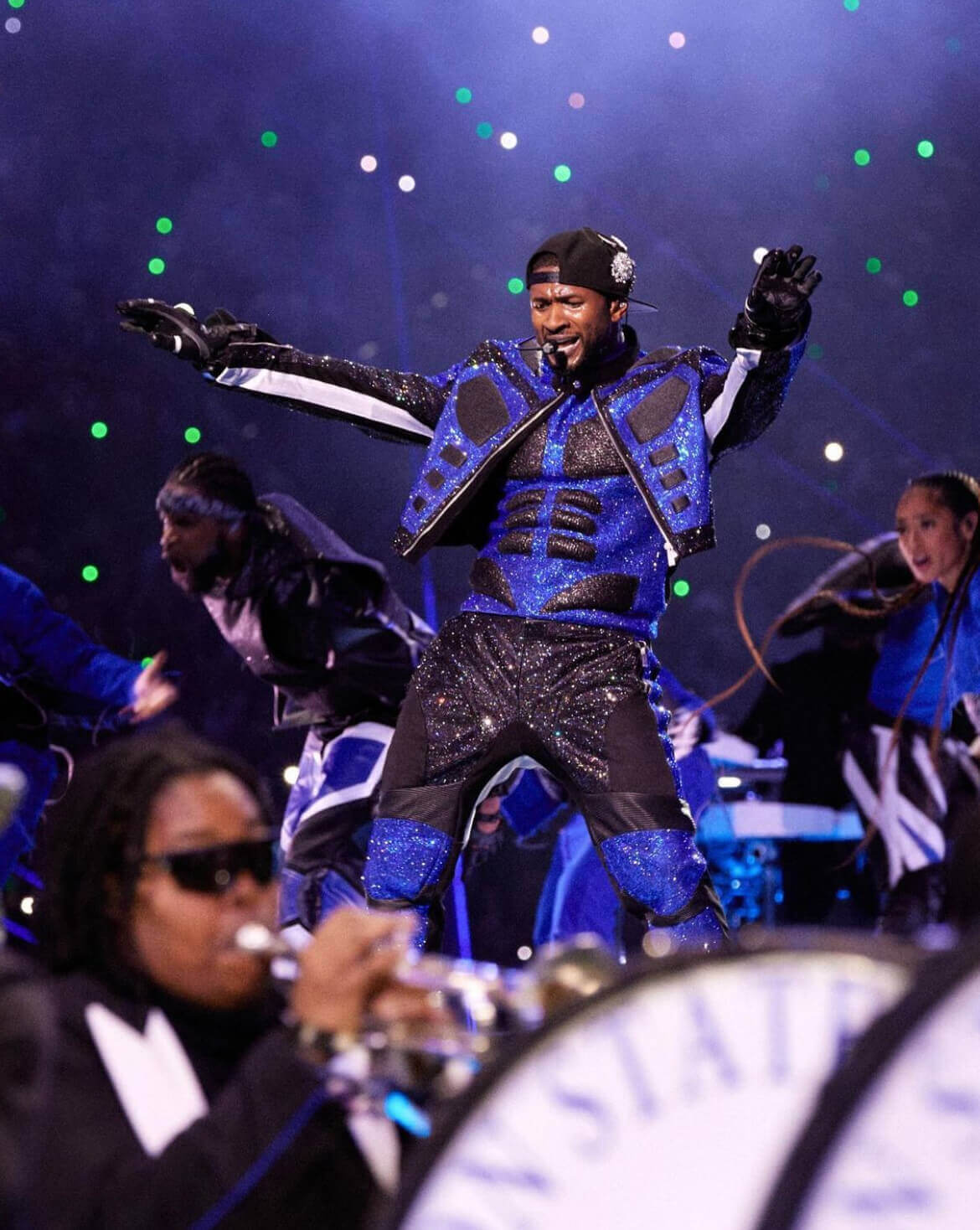 From roller skating antics to a marching band spelling out his name, Usher’s performance was a dazzling display of showmanship and star power.