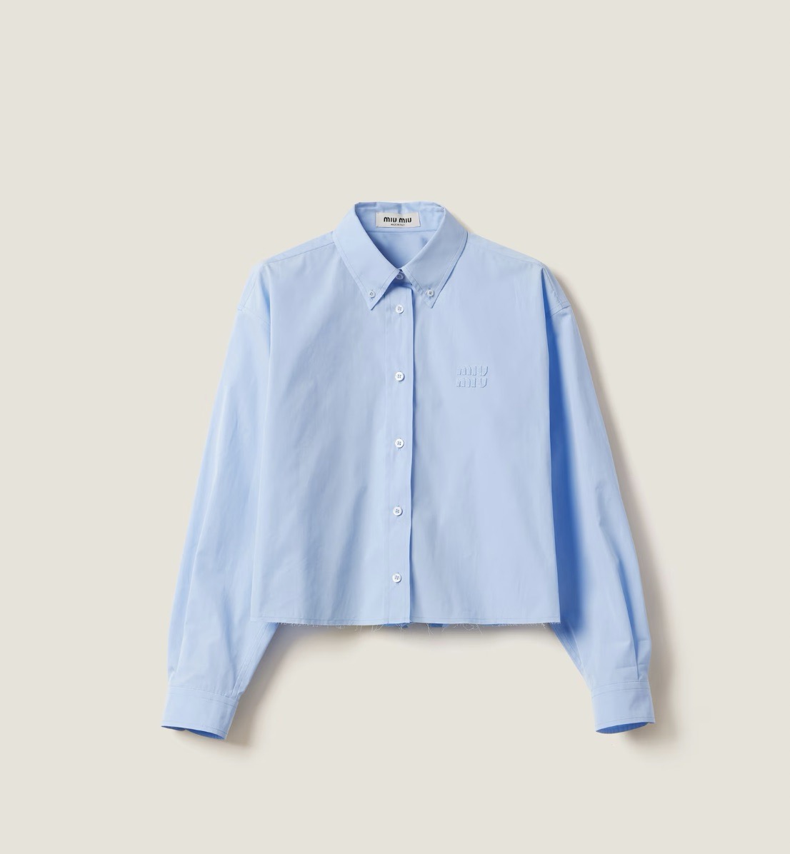 Poplin Shirt with the Logo Embroidered from Miu Miu/ Photo via Miu Miu website