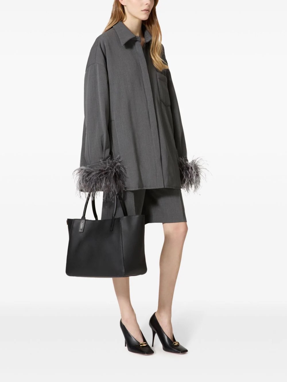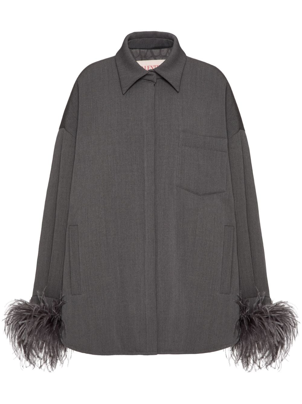 Valentino’s feather-trimmed wool shirt / Photo via Farfetch