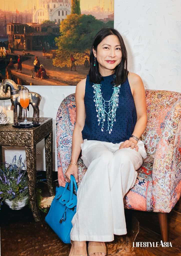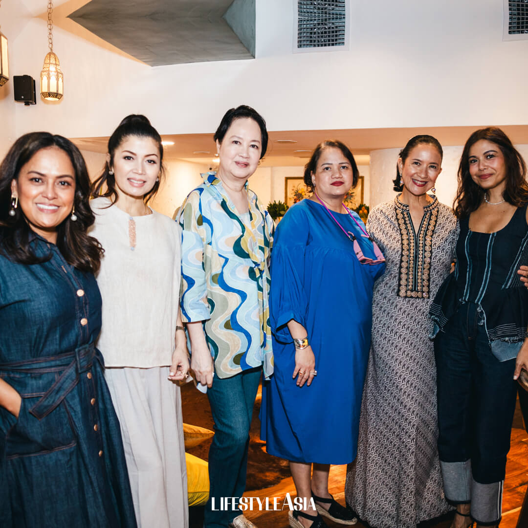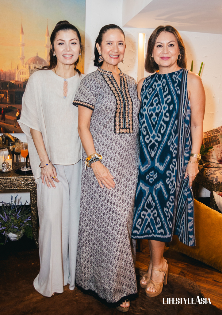 Before long, the room was a sea of azure blue hues as it filled up with stylish guests decked out in Mediterranean-inspired ensembles. Spotted were Marilu Batchelor in an indigo Ikat halter dress, Hera Geriene in a flowy sky-blue caftan and bejewelled gold bag, Fiona Ottiger looking fresh from the isles in a hand-block summer dress with silverlace-up sandals and Alelee Andanar in a fashionable Zimmerman pantsuit.