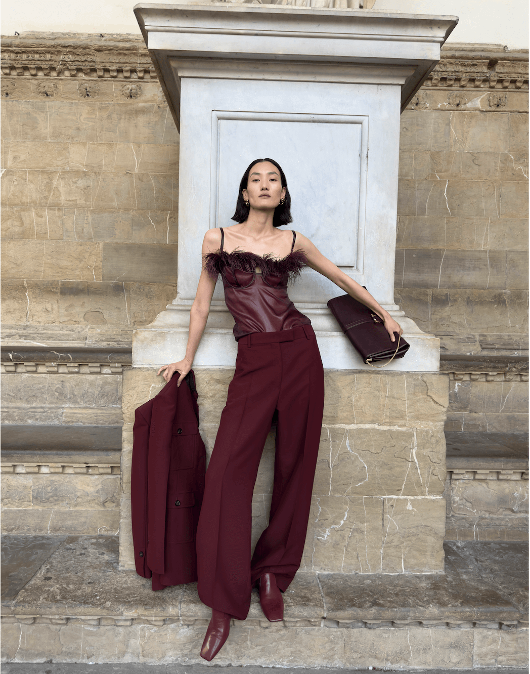Populated by striking berry tones, deep chocolate, and verdant olives, this season’s color spectrum is shaping up to be an enigmatic one. In lieu of black, runways and red carpets have been filled with burgundies, beiges, and browns that could have very much been taken from a Dutch master’s palette. Brands such as Loewe, Ferragamo and Bottega Veneta have all embraced these rich tones to great effect, debuting supple leather accessories and a bevy of stylish separates.