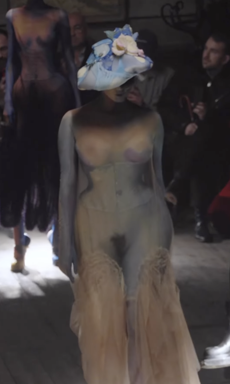 The models were moving like Victorian porcelain dolls that came to life; however, the runway pieces display the human body. The juxtaposition between a doll and a human being can be Galliano’s way of telling the world that women are not objects. Furthermore, the collection did not hesitate to fully unveil the ethereal beauty of a woman’s body—from the different curves and shapes to the existence of body hair; the show embraced the natural form of womanhood.