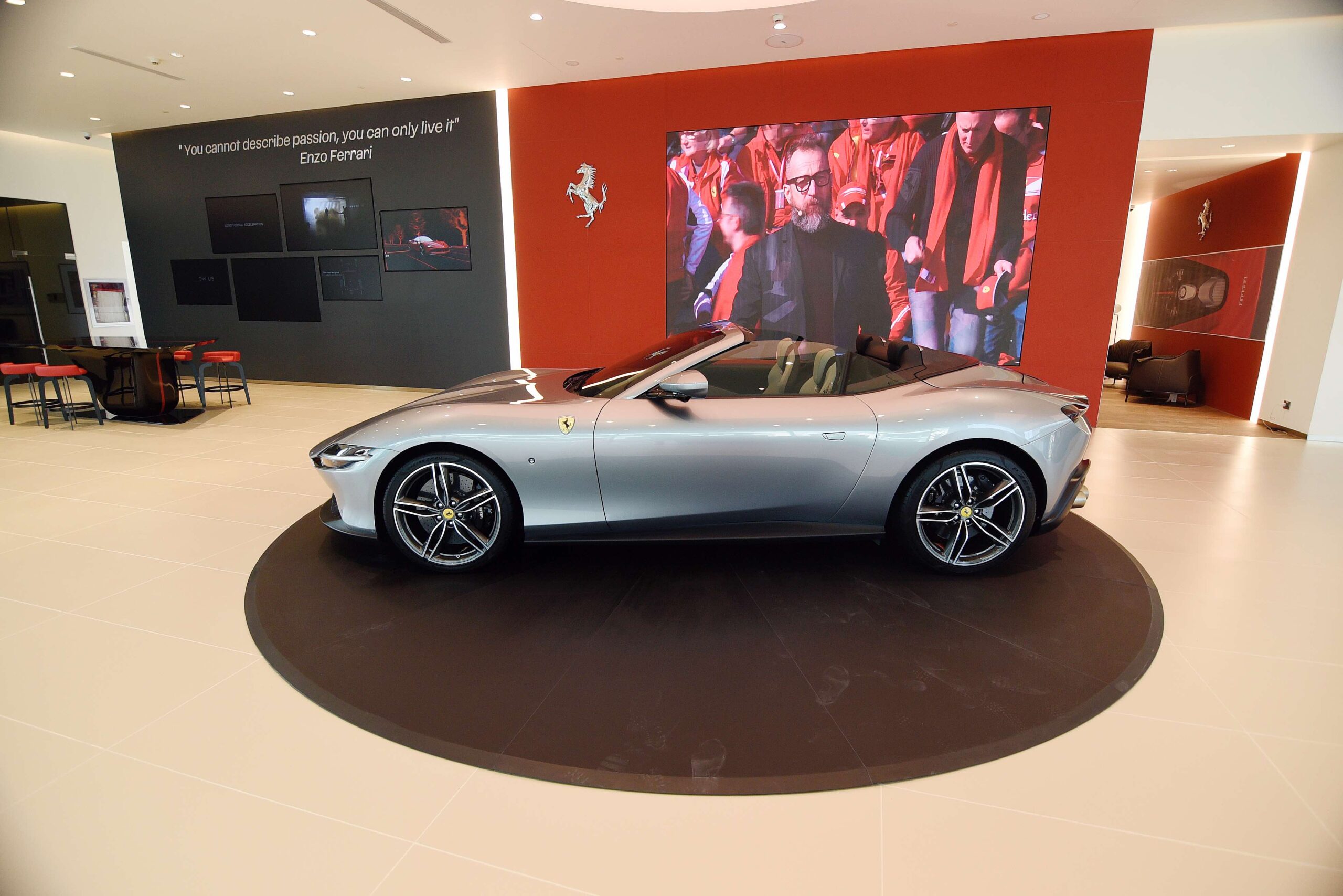 The showroom’s luxurious atmosphere warmly welcomes and offers an immersive experience into the Ferrari lifestyle, its interiors reflecting the brand’s global corporate identity, combining contemporary brand elements, traditional color palettes and images of revered experiences. The brand adds, “When they step into the showroom, owners and clients will be transported to a little piece of Italy in San Juan City.”
