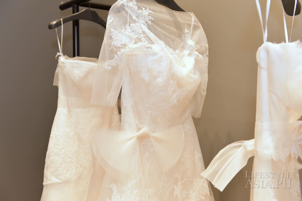 There were women who wore Vera Wang as brides and recounted their weddings as they walked through the newly-opened boutique at 8 Rockwell. The interiors had the same feel as the stores abroad, bringing back recollections of visits to a bridal wonderland. stood out in a showroom room with ,and graphite concrete floorsGuests touched ethereal–looking gowns that conjured romance and dreams coming true before turning their attention to macarons from Laduree, tea and bubbly that were served in the first Vera Wang store in the Philippines, which finally opened in Manila.