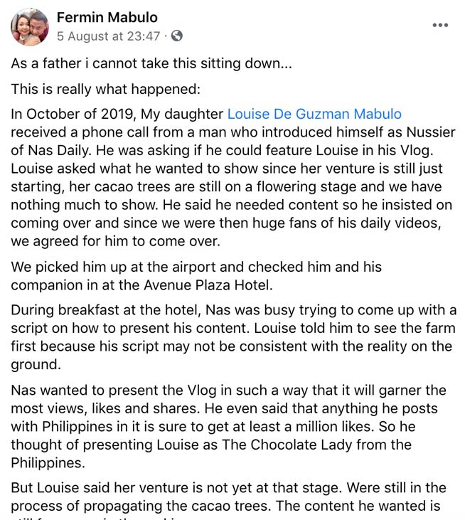 “The agreement between the parties should also be written in English and the local Kinalingga language and witnessed by the National Commission for Indigenous Peoples (NCIP),” Castro added. “I believe that the problem can still be corrected if Nas Daily respects Kalinga culture and follows the law.”