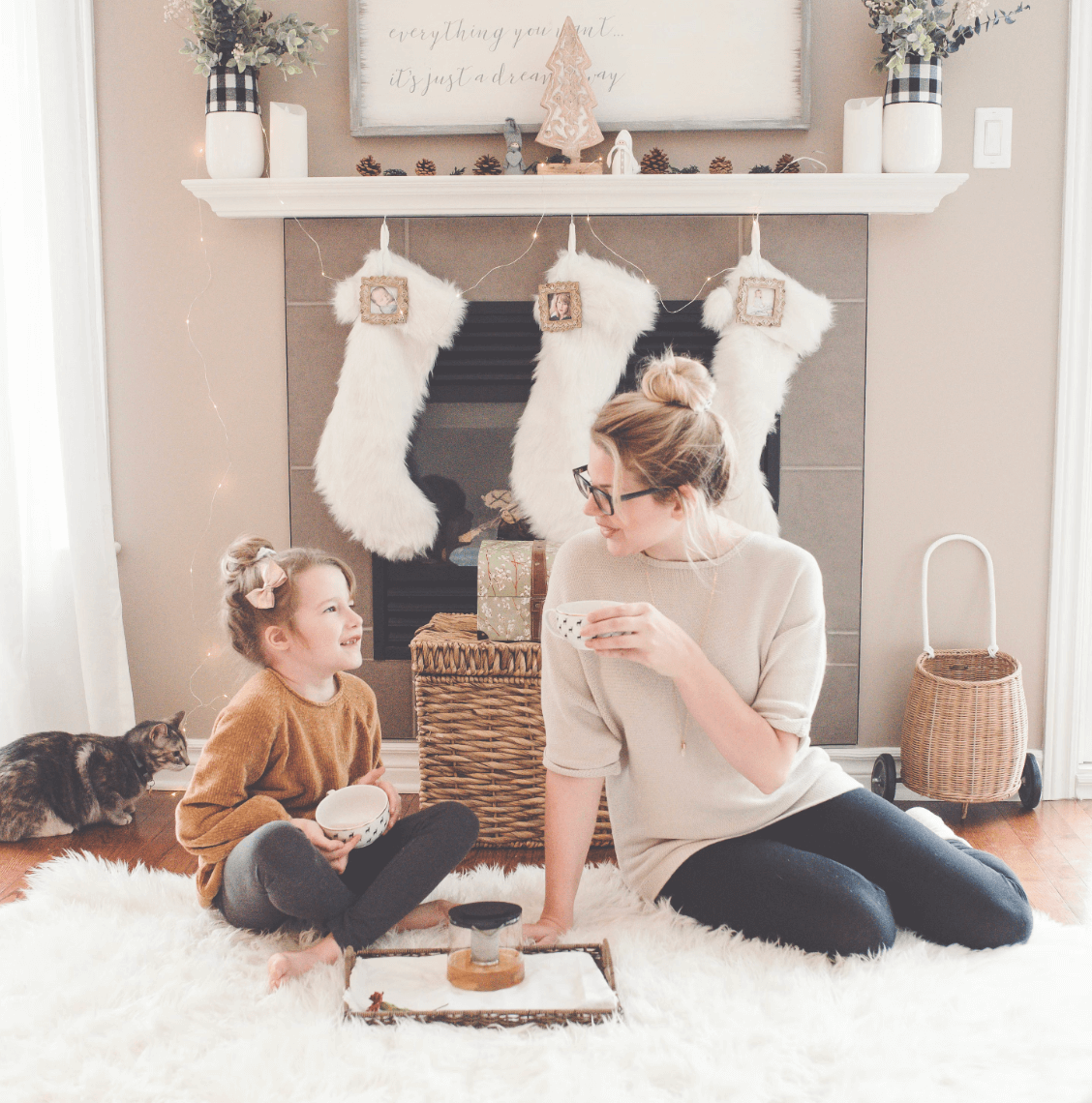 Enjoy the warmth of the twinkling lights, but be cautious not to block Santa’s route to the stockings if you decide to make it a Christmas Eve tradition.