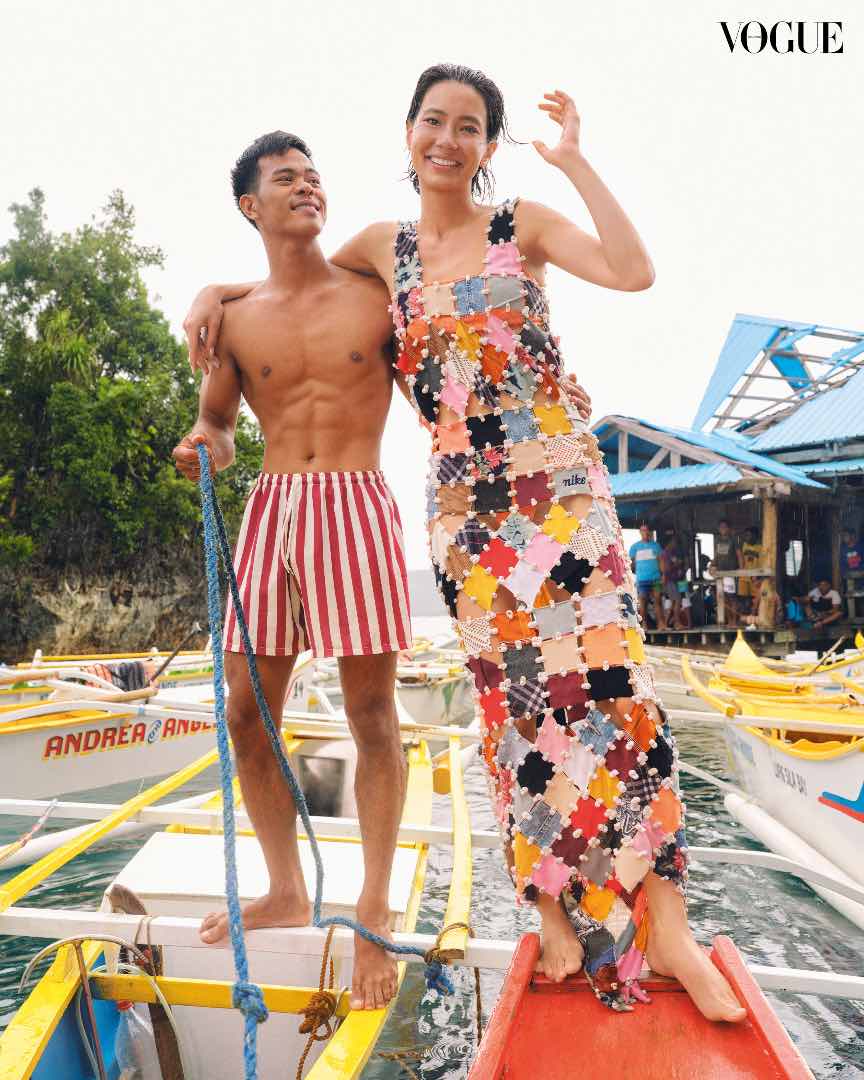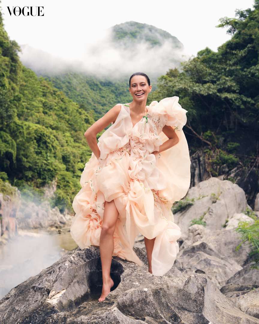 The 36-page cover feature travels the length of the Philippines, with Magno floating in the lagoons of Bucas Grande, Surigao del Norte, exploring the otherworldly rock formations of Biri Island, Northern Samar, and conquering the marble boulders at Tinipak River, Rizal. All this while dressed in clothing from international couture labels to local indie darlings, showing a range of designers and brands that have a mind for both luxury and sustainability.