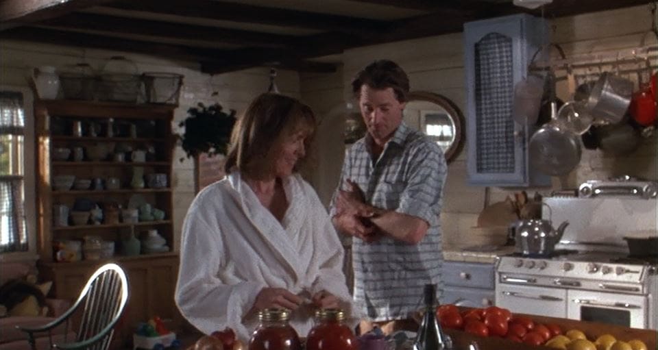BABY BOOM (1987) *Honorable Mention* – Although this movie was not directed by Nancy Meyers (it was made by her then husband Charles Shyer), the Meyers kitchen was first evident in 1987’s Baby Boom, in which she wrote the screenplay. Diane Keaton’s character J.C. Wiatt leaves New York city for a chic antique country home in Vermont. Althought J.C. encounters many problems in its restorations, we appreciate the ranch look of her kitchen in which she starts her gourmet apple sauce baby food which would turn her into a multi millionaire.