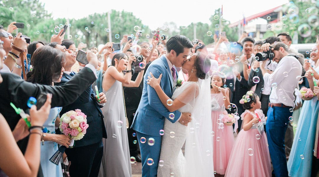 There was a heavy downpour as the groom Vincent Gabriel Murga made his way to church in a vintage 1955 Ford Customline for his altar date with his girlfriend of ten years, Elizabeth “Billie” Puyat. But as guests arrived in the 18th century, newly-renovated Our Lady of the Assumption Dauis Church in Bohol, the sky cleared up and the sun came out. It was the moment the couple had been waiting for, since Vince proposed to Billie fifteen months earlier in Iceland after a romantic helicopter ride. Fr. Fidel Daza Orendain, SDB started the ceremony with a solemn blessing of both parents, Bob and Reena Murga, and Louie and Nina Puyat, with a timely reminder to the young couple about the precious gift of family.