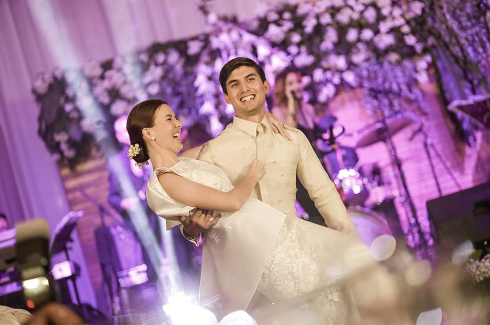 A radiant Sofia walked the down the aisle wearing Ito Curata’s creation as the University of Santo Tomas Choral sang the bridal march Vocalises on Morricone’s Nella Fantasia. The ceremony was officiated by Father Tito Caluag, who in his homily said, that their wedding was “a moment of choice.”