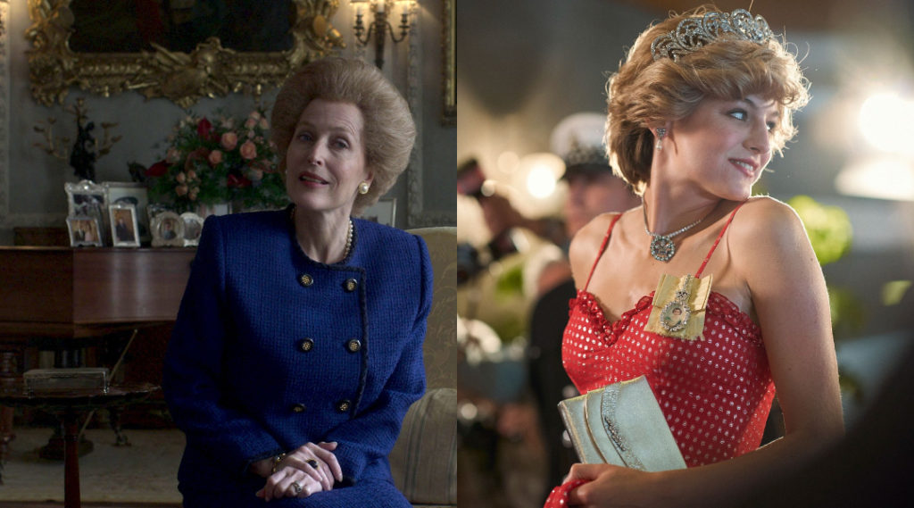 LEFT: Gillian Anderson as Margaret Thatcher. RIGHT: Emma Corrin as Princess Diana. (Photos from Netflix)
