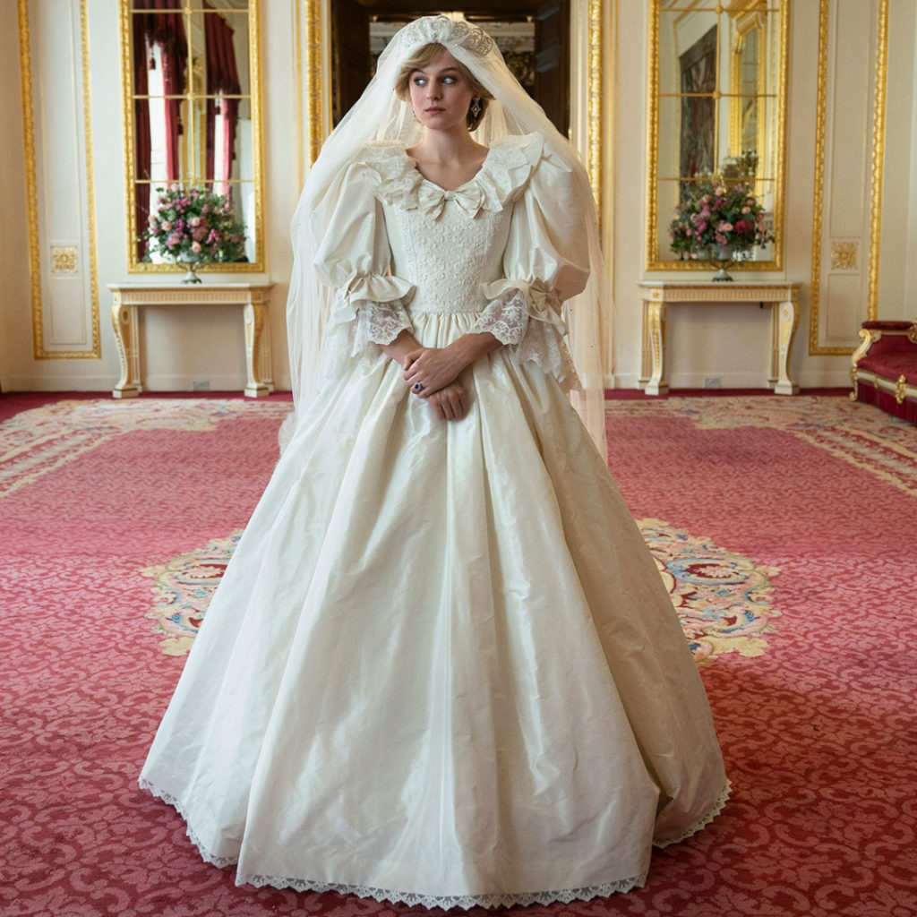 Princess Diana’s silk taffeta wedding gown. (Photo from Netflix)