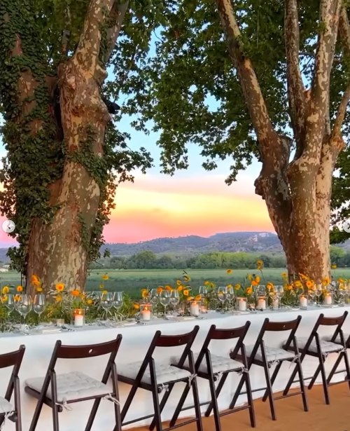 Meanwhile, Argentine model and artist Mica Arganaraz paired her white mini skirt and zip-up jacket number with a white Jacquemus Le Bambino purse. The couple’s ceremony was held in the city’s local town hall, while the reception commenced at Château de Bonneval.