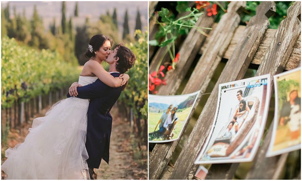 Isabelle Daza and Adrian Semblat also exchanged their “I do’s” in Tuscany, Italy. The entire styling of the church and the reception that followed featured beautiful floral arrangements and hanging lights. There was also a vignette of the spouse’s memorable experiences. A string connected these photos and were hung around the wooden fence of the venue. It was certainly a celebration of the beauty of love.