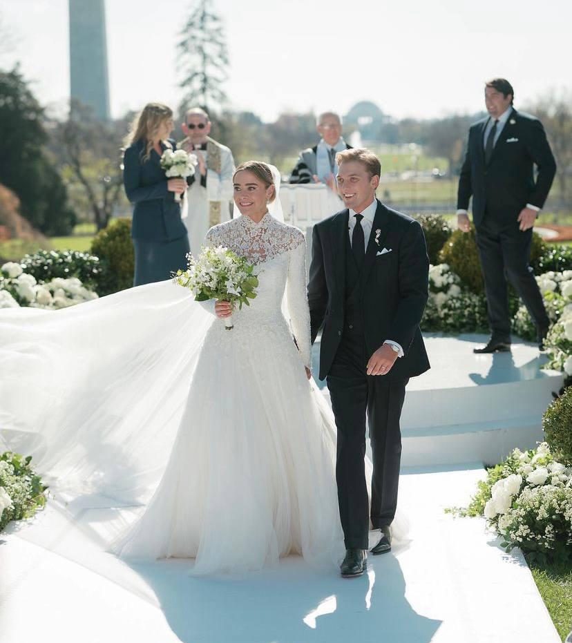 The bride wore a Grace-Kelly-inspired gown by Ralph Lauren, the same label she donned on Inauguration Day.