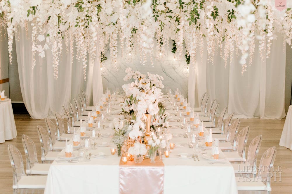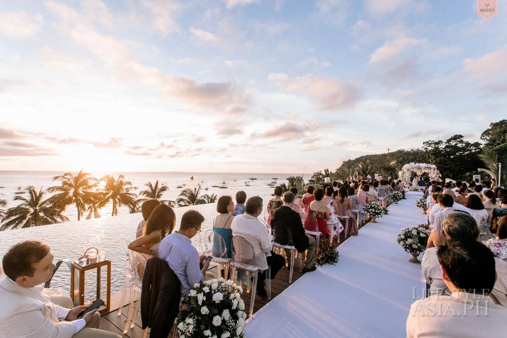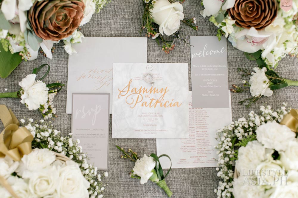 The wedding was held by the infinity pool of The Lind Boracay, with the reception indoors in the ballroom. The entire room was decked with flowers and rose gold table accents. An intimate destination wedding with only 260 guests, a friend commented it was “the most un-Chinese Chinese wedding she had ever attended.” Patricia was particularly struck with the camaraderie among guests, the old friendships and the new ones being made. “More than anything, that made the event extra special.”