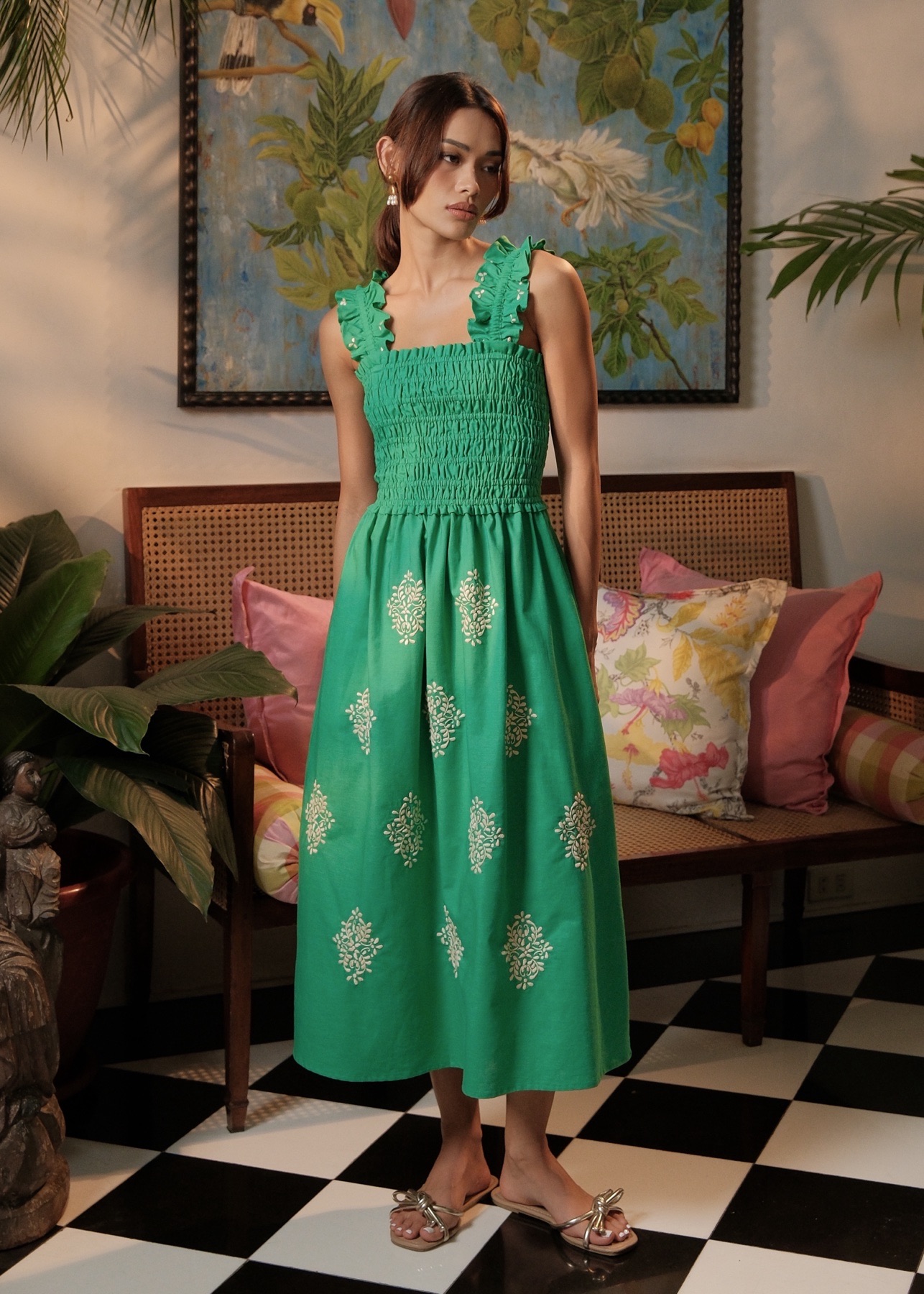 “I envision a meadow of seagrass growing in ocean waters,” says Saguil describing how for this season, she drew inspiration from the natural beauty and colors of marine life. The collection’s two colorways, which the designer christened “ocean” and “grass”, immediately conjure images of vibrant tropical seascapes. True to Amarie’s ethos and brand aesthetic, every piece is embellished with Filipino embroidery, in styles that are uncluttered and functional. “My clothes are meant to be worn in the tropics, at warm weather seasons and destinations,” shares the designer.