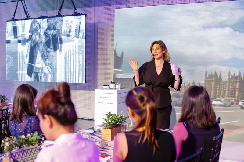 A mini garden path of fresh basil and neroli trees led guests to the main hall adorned with multiple screens introducing the latest scent of Jo Malone London, Basil & Neroli. The new scent depicts A London Lark, a British expression for having a carefree adventure with its playful use of basil and neroli notes with a base of white musk. Jo Malone London’s Global Director, Debbie Wild led the morning’s festivities that included a hearty brunch served with some bubblies and fresh pressed juices. Debbie along with Vicki Tomkinson gave quick tips on the art of combining fragrances with the new scent for each guest. To make more things fun a badge making station allowed guests to make their own quirky badges to take home along with the new fresh citrus and floral scent encased in Jo Malone London’s signature black and cream box.