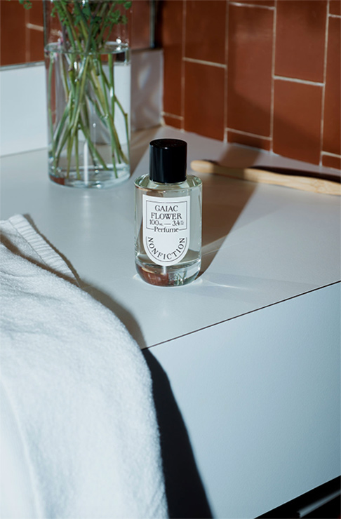Another body-care-centered brand to watch out for is Nonfiction. Perfumes, scented hand, and body wash and creams come in five main scents: Gentle Night (suede, cedarwood, and moss), Gaiac Flower (floral aroma with a hint of vanilla), Forget Me Not (basil, pepper, gardenia, and amber and The Shower (bitter orange, Campari and patchouli).