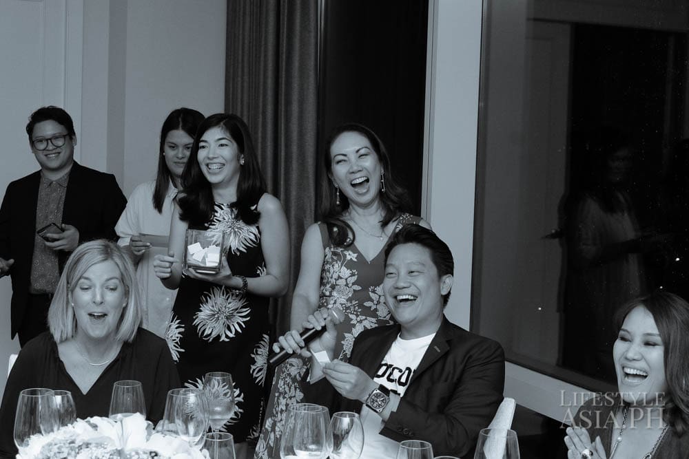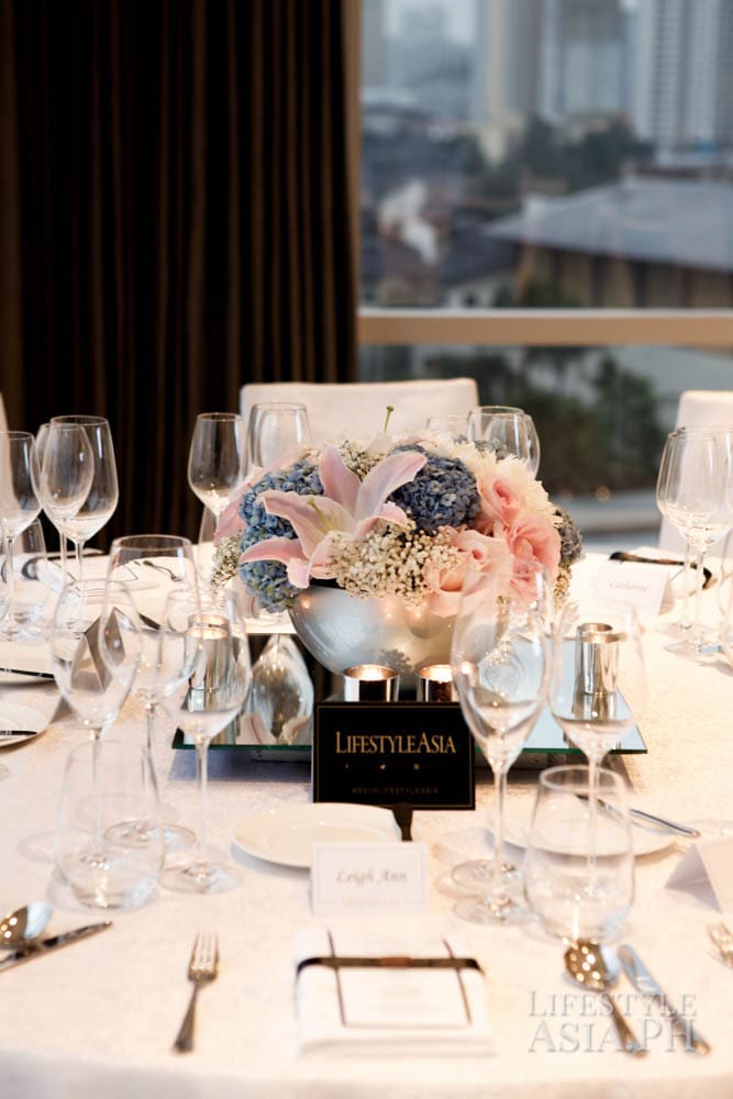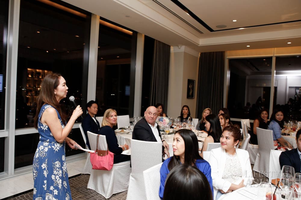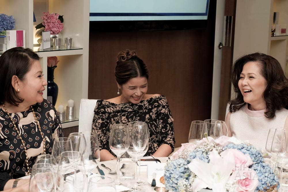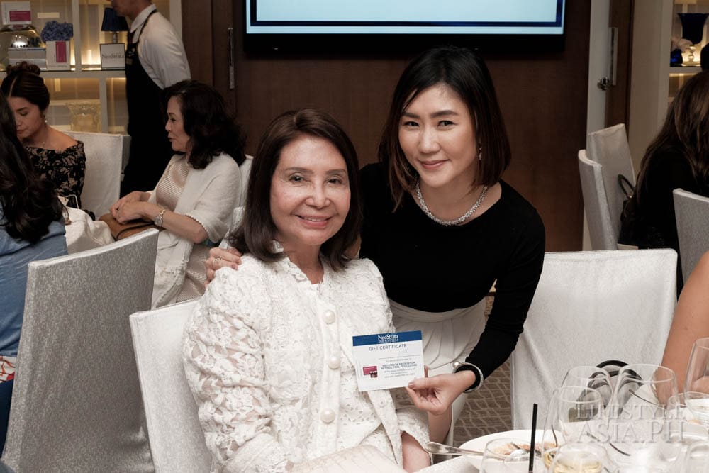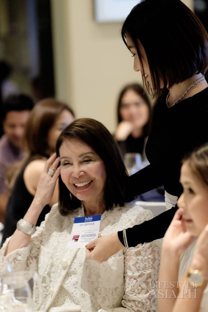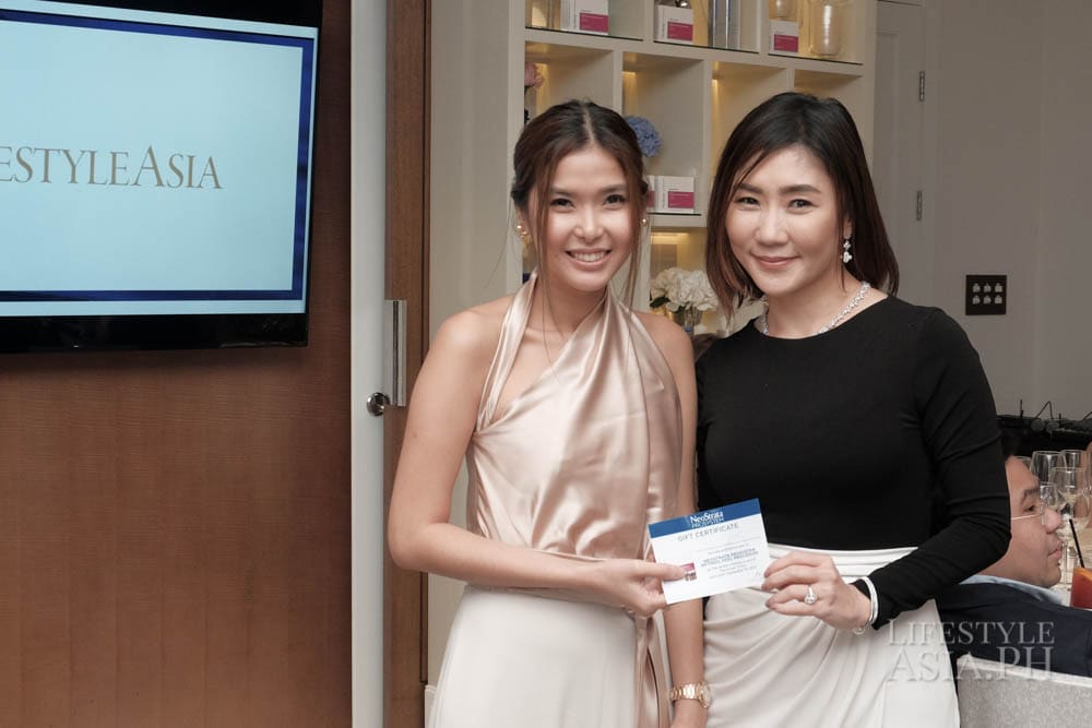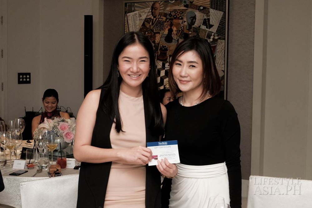 Guests of honor Z and Aivee Teo of the A Institute, who uses NeoStrata regularly for their treatments, were in attendance. Round tables covered in white linens were adorned with colorful blooms by Robert Blancaflor. The room was filled with lively chatter about the new products. Glasses of wine were served over a dinner prepared by Raffles’ premium French brasserie Mireio. When the guests were full, Lifestyle Asia Editor in Chief Anna Sobrepena made an exciting announcement: it was time to raffle off five retinol peel treatments at the A Institute.