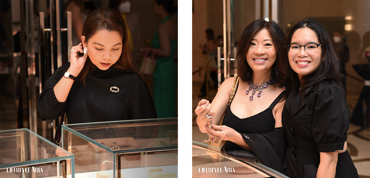 Melanie Tan admiring the sleek T Collection (left); Salome Uy and daughter Stefi taking pleasure in fitting the Wrap Bracelet (right)