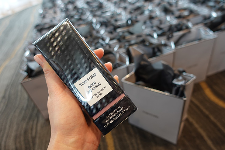 Due to the dashing groom’s status as a regional ambassador for Tom Ford Beauty, Hyun Bin wore a Tom Ford suit at the wedding, and the brand was very much involved in the couple’s giveaways. The 200 guests at the wedding (friends, family, fellow industry A-listers) all came home with a bottle of Tom Ford Rose de Chine Eau De Parfum.
