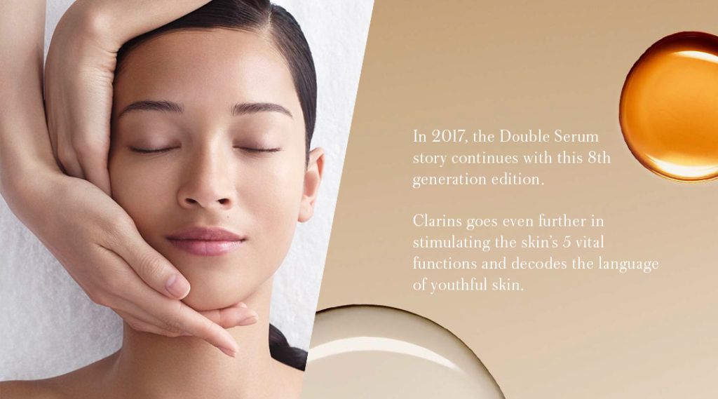 Turmerone, along with twenty other plant extracts chosen to act on specific skin functions, make up the bio-inspired, highly concentrated, and unique Double Serum formula. Its hydric and lipidic dual phase combines two-third water-based and one-thirds oil-based ingredients that is in perfect bio-affinity with the human skin’s own water and oil content. It is made from organic ingredients sourced from fair trade practices, such as leaf of life, edelweiss, goji berry, and green banana, among others. All of this is housed in the technological gem Clarins double vial bottle and double pump system that delivers both hydric and lipidic phases simultaneously.