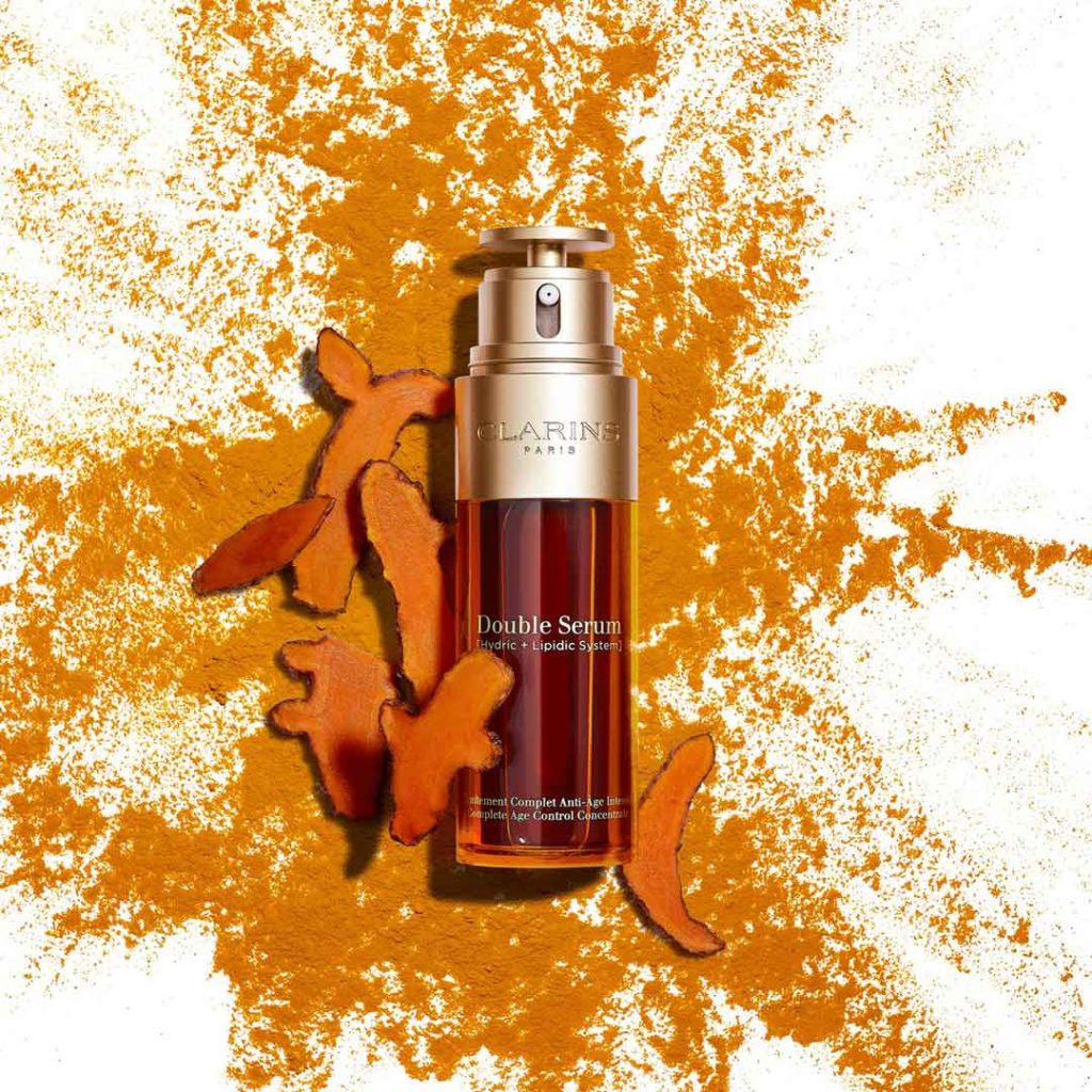 Housing a unique flavor profile when used in cooking and a plethora of therapeutic and medicinal properties, turmeric has been widely used all over the world for thousands of years. Its extract, turmerone, is a molecule that aids the plant in pollination and alerts of any incoming threats. These are the exact properties that have been collected and concentrated in the Clarins Double Serum that preserves the cells’ listening ability, thereby optimizing the skin’s five vital functions as you age.