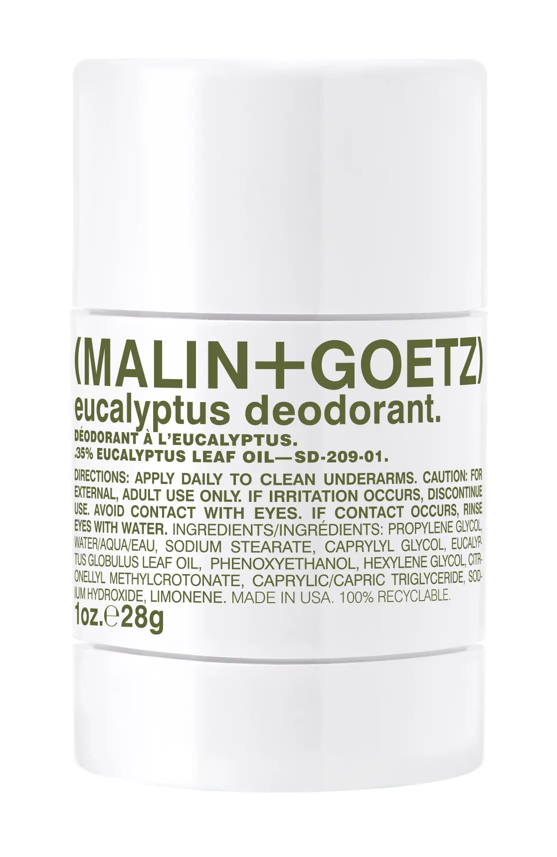 Malin + Goetz Eucalyptus Deodorant – Their #1 best-selling product, the Eucalyptus Deodorant is formulated without aluminum, parabens, or alcohol. The natural eucalyptus extract provides a refreshing scent while effectively neutralizing odor on all underarm skin types.