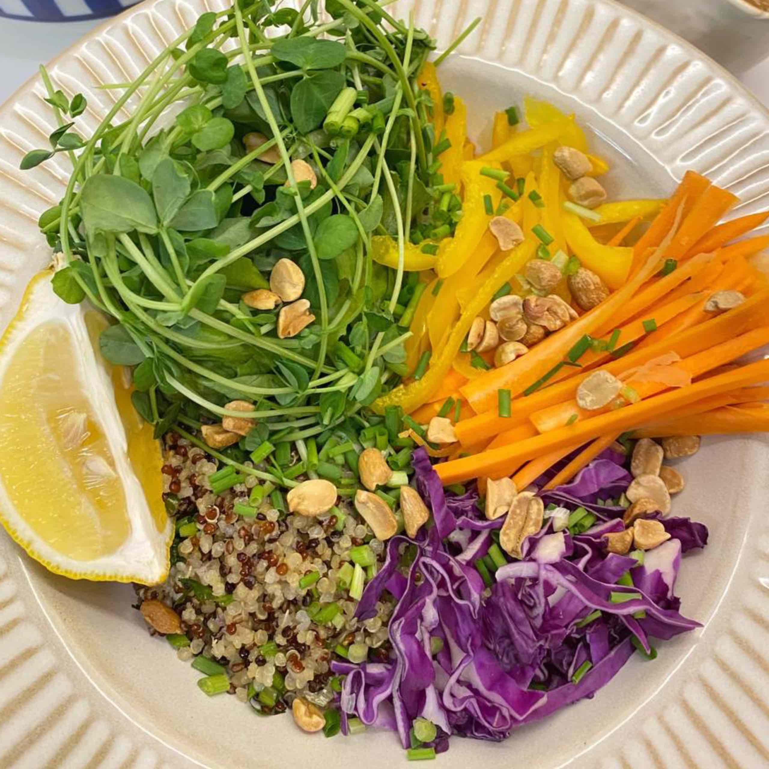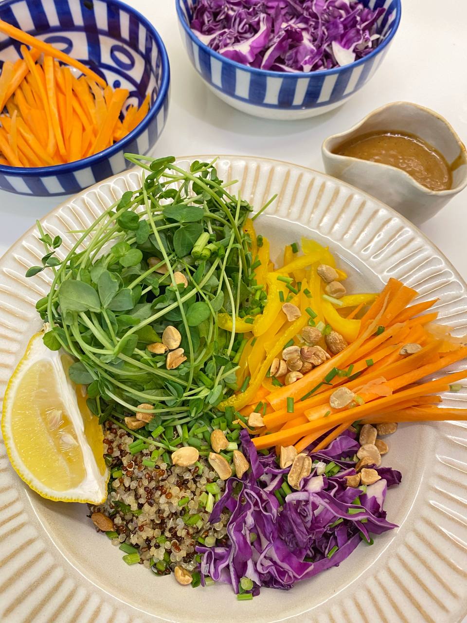 Samantha offers five specific tips to answer this question: chew your food properly, hydration is key, include prebiotics and probiotics to your daily routine, get good quality sleep, and eat more antioxidant-rich foods. Simply put, she says, “Eat a rainbow!”
