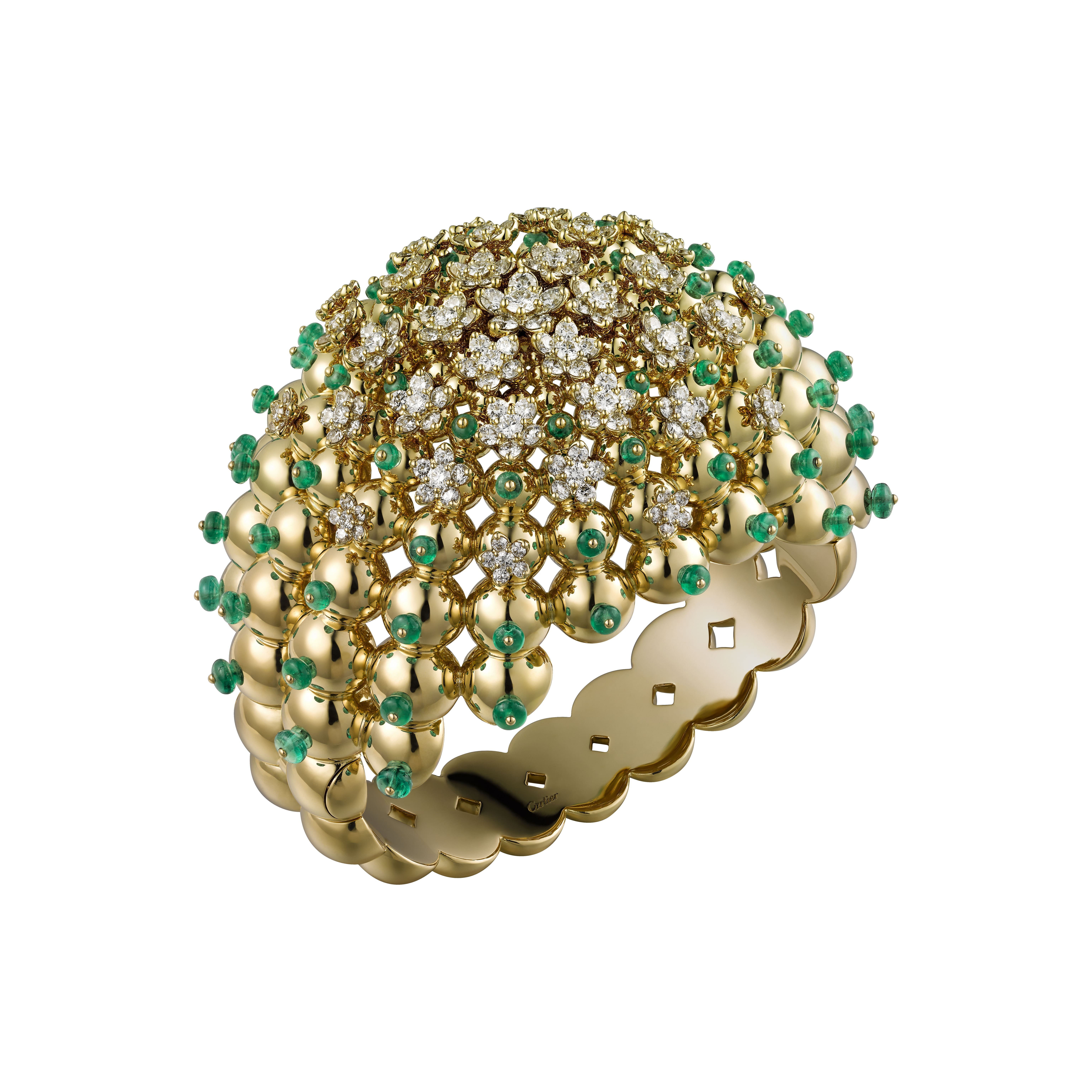 The Cactus De Cartier collection is inspired by the elegant, free-spirited woman. The collection of powerful, sculptural jewelry mixes Cartier gold with deep greens and bright pinks. The general theme follows the silhouette of the famous desert plant, even adding fine gold spines to give it full effect. Some pieces feature an occasional diamond shaped as blooms, reminiscent of other nature found at the hot Sahara.