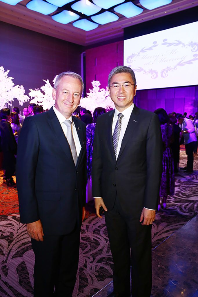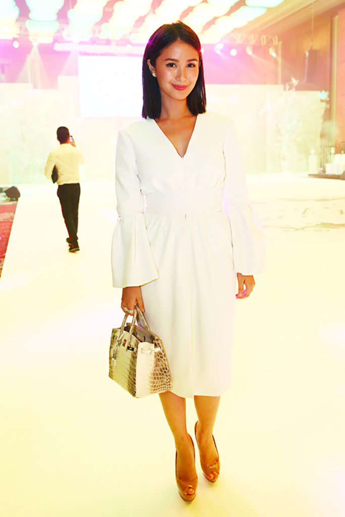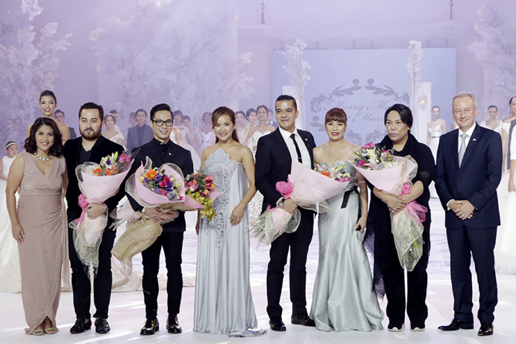 Dramatic rose-tinted lighting from the 360 colored pillow lights of the Marriot Grand Ballroom set the mood for an evening celebrating love and the idea of forever. Fashion aficionados scurried to occupy the bleacher seats that could accommodate a thousand, hoping for the best view of the latest bridal couture creations of Cary Santiago, Francis Libiran, Mark Bumgarner and Ryan Madamba. Down the white runway walked the fashion designer’s regular muses. The audience was in awe of the different versions and styles the classic wedding dress can take form in. As the show concluded, friends swarmed onto the stage to congratulate each artist for their months of hard work. The night carried on to a party that replicated the best the Marriott has to offer. Tiers upon tiers of wedding cakes impressed guests, especially the First Dance cake which was covered in hand painted sugar butterflies and rose petals topped with the silhouette of a couple and chandelier.