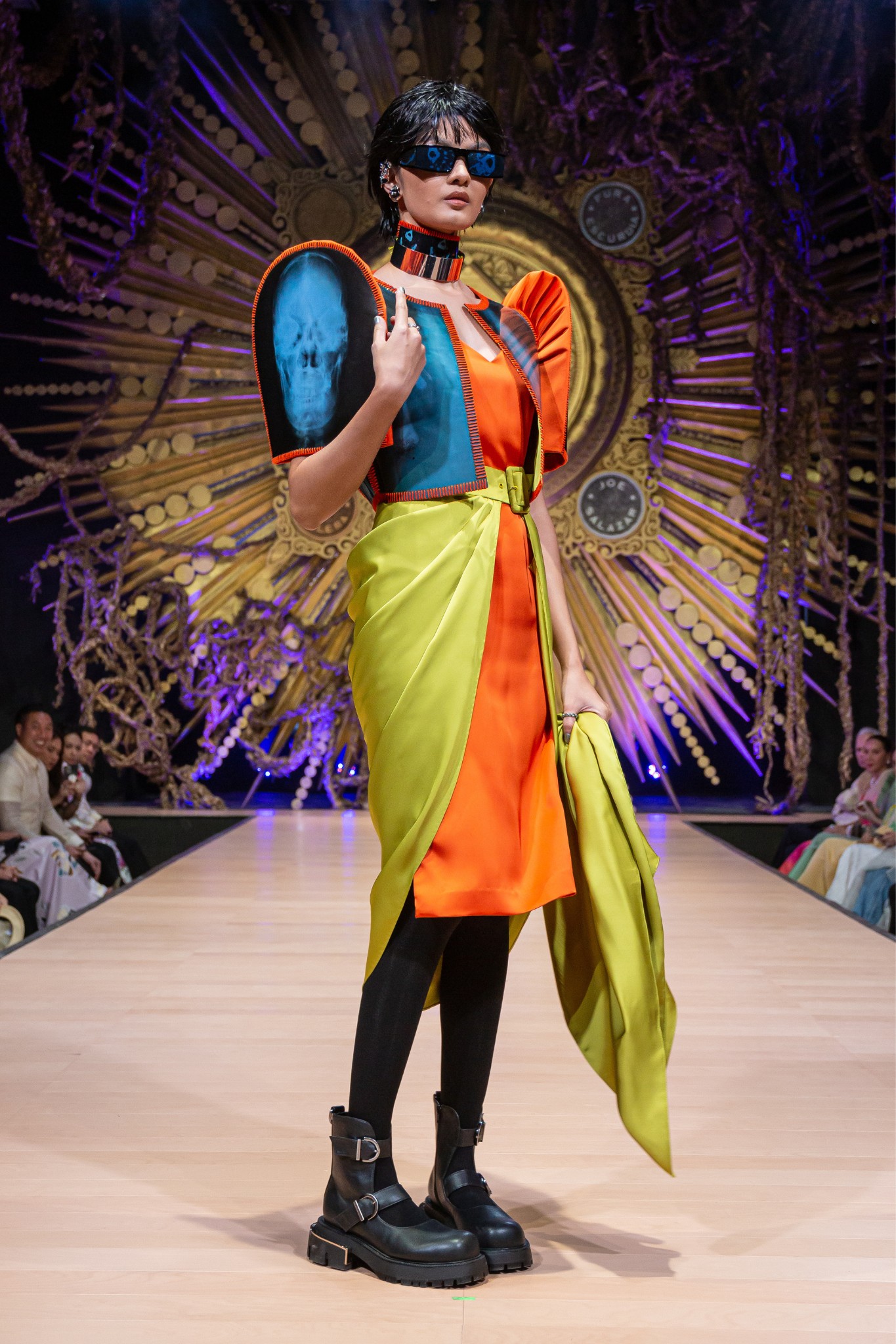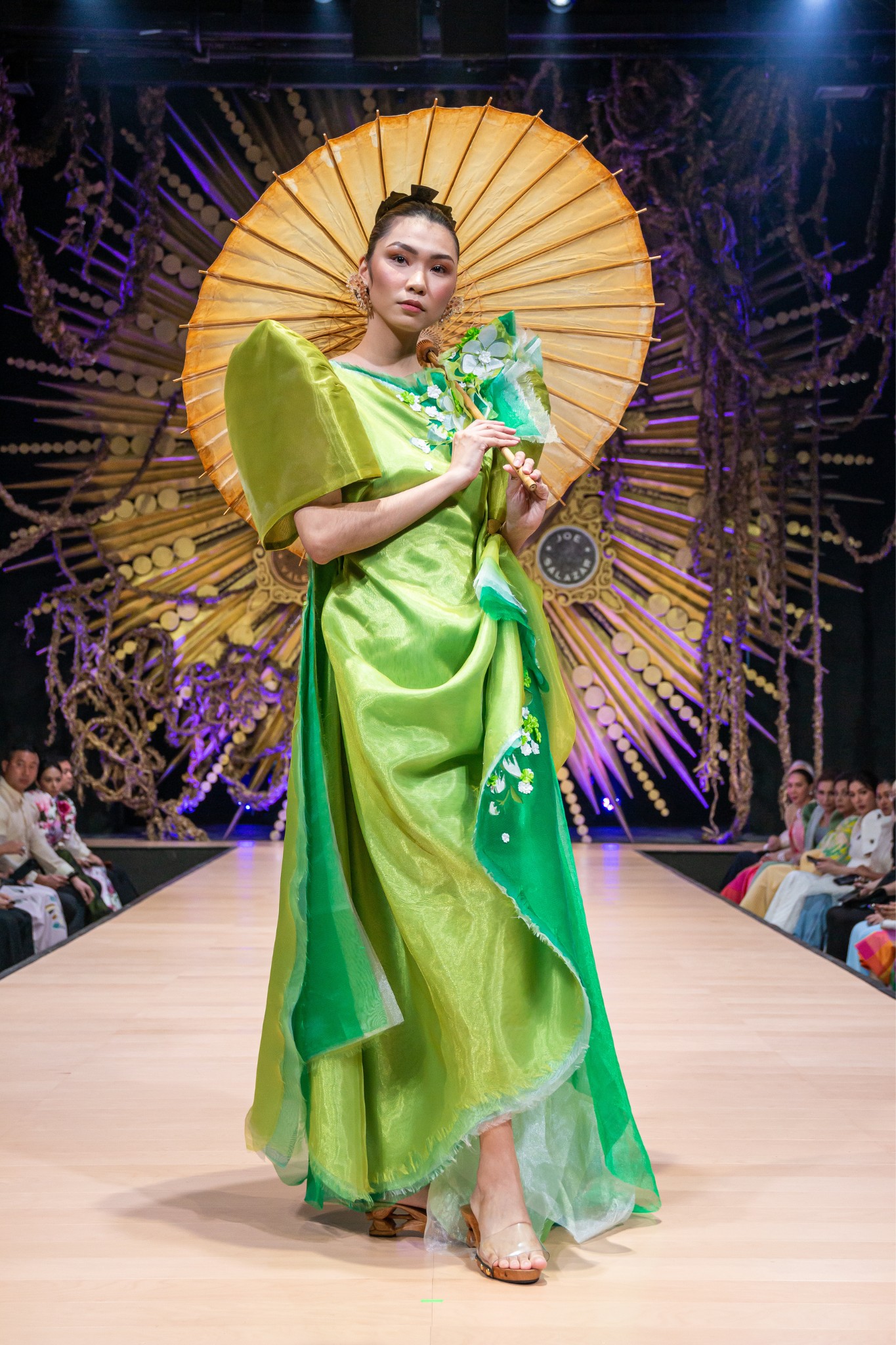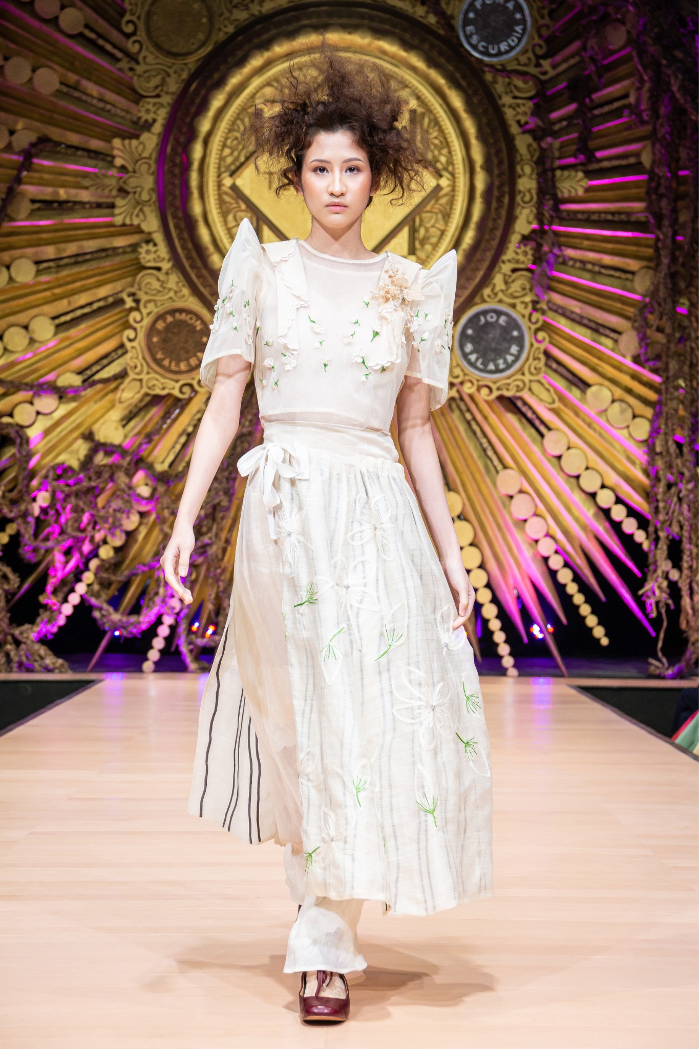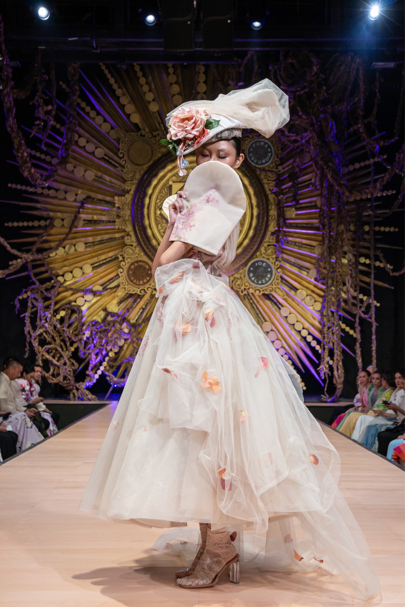 Glady Rose Pantua, the bronze awardee, featured local textiles from her city in her collection, as seen in the pants’ weaving and the delicate beading on the sheer fabric.