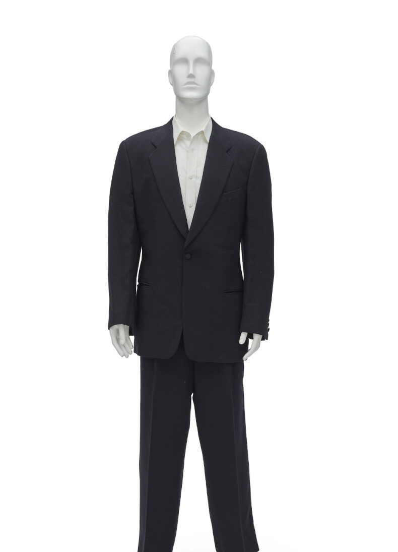 The Calvin Klein tuxedo and Calvin Klein suit and black tie are particularly significant pieces, not only because they showcase JFK Jr.’s signature style of wearing black suits and bow ties, but also because they represent an important moment in his life and history. JFK Jr. purchased them from Calvin Klein when his wife, Carolyn Bessette Kennedy, was working there as a publicist. The couple first met in the VIP fitting room at Calvin Klein in 1992 and went on to marry in 1996.