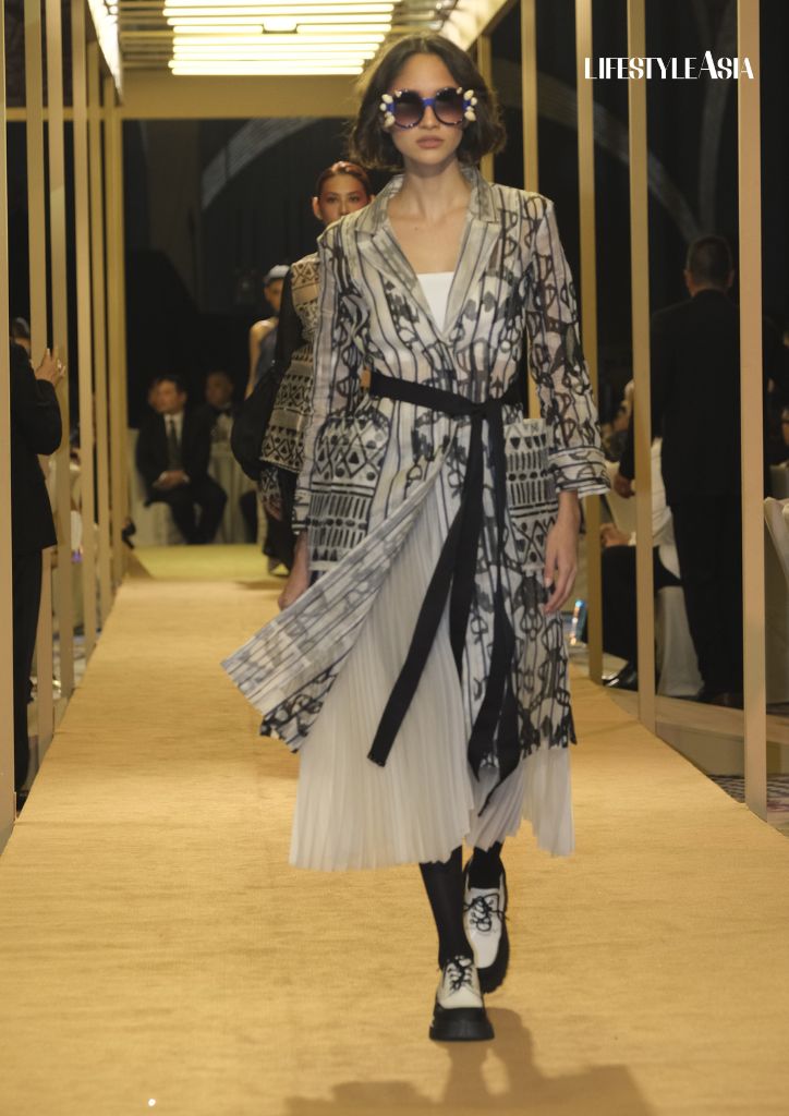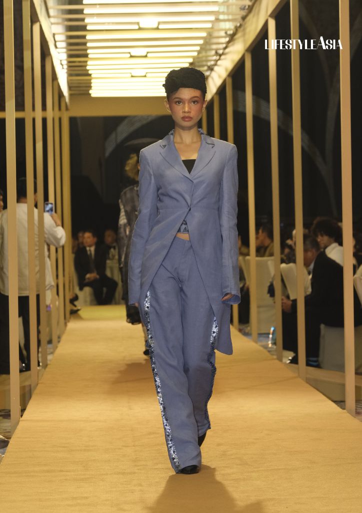 These inspirations and design codes were present in the collection as piña long-sleeve shirts, printed trench coats, and coords walked down the runway. Furthermore, the piña used in each design were printed with patterns and motifs unique to Filipino culture. Lulu also designed for both men and women. She created looks that are feminine, masculine, and androgynous, giving options to all.