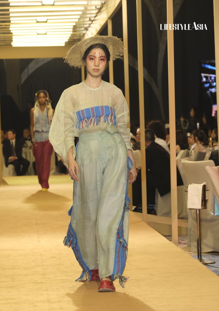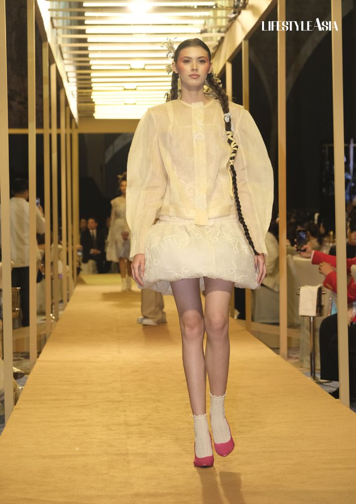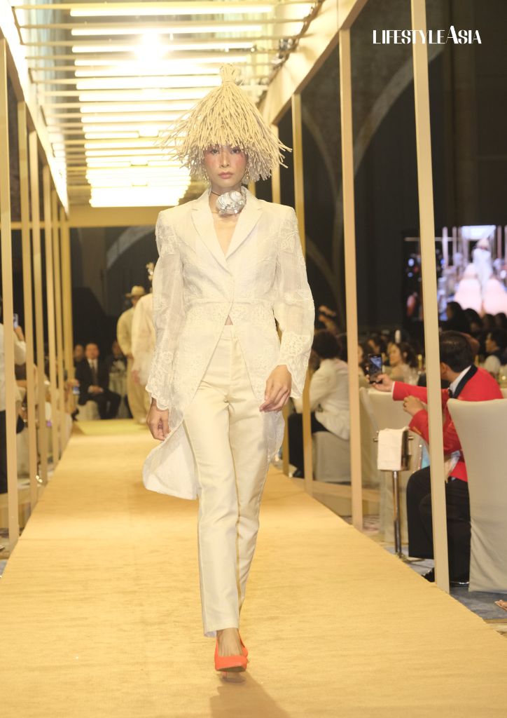 Moreover, the design story for this collection is the symbolic bridging of the three major islands of the Philippines. “Symbolic Bridging of Islands of Luzon, Visayas, and Mindanao: Kalinga motif and embroideries for Luzon, piña for Visayas, and mandaya motif for Mindanao,” she explained.