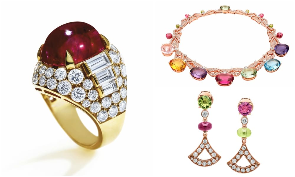 Colored gemstones have taken its center stage, replacing costly diamonds. BVLGARI pioneered incorporating stunning gemstones in its collection with Giardinetto brooch. The brooches highlight the different color combinations and have become iconic designs at present. Fairy Wings, a necklace from Cinemagia, features eight different gems representing the beauty of nature.