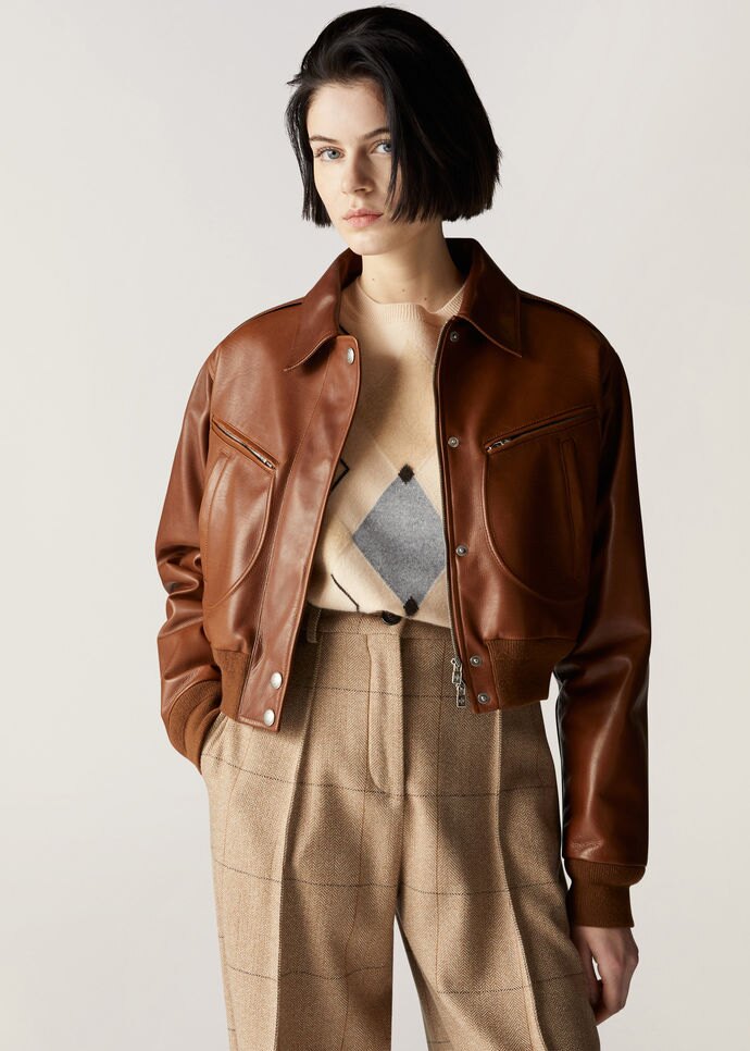 Looking for a cropped leather jacket that would elevate your style? The Roldan Bomber Jacket from Loro Piana is for you, The jacket is made from soft leather treated with a natural, water-repellent waxed finish that is pleasant and velvety to the touch.
