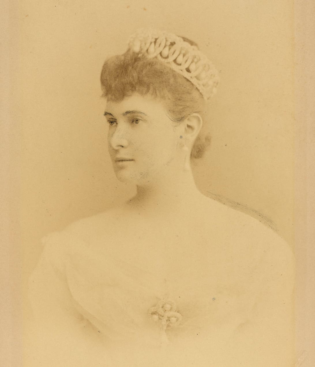 A wedding gift to Archduchess Maria Christina of Austria for her wedding to King Alfonso XII of Spain, the tiara includes large round pearls in between diamond loops, each loop ccontaining an inner ring of round diamonds. The piece is topped by round pearls in between each loop and at the center. The tiara was passed on to Alfonso XIII, and next worn by his daughter-in law Princess Maria de las Mercedes of Bourbon-Two Sicilies,  Countess of Barcelona, followed by the current Queen mother of Spain, Queen Sofia. The Spanish royal family is in the habit of sharing tiaras, and this piece was worn by various females of the family during the time Sofia was queen.