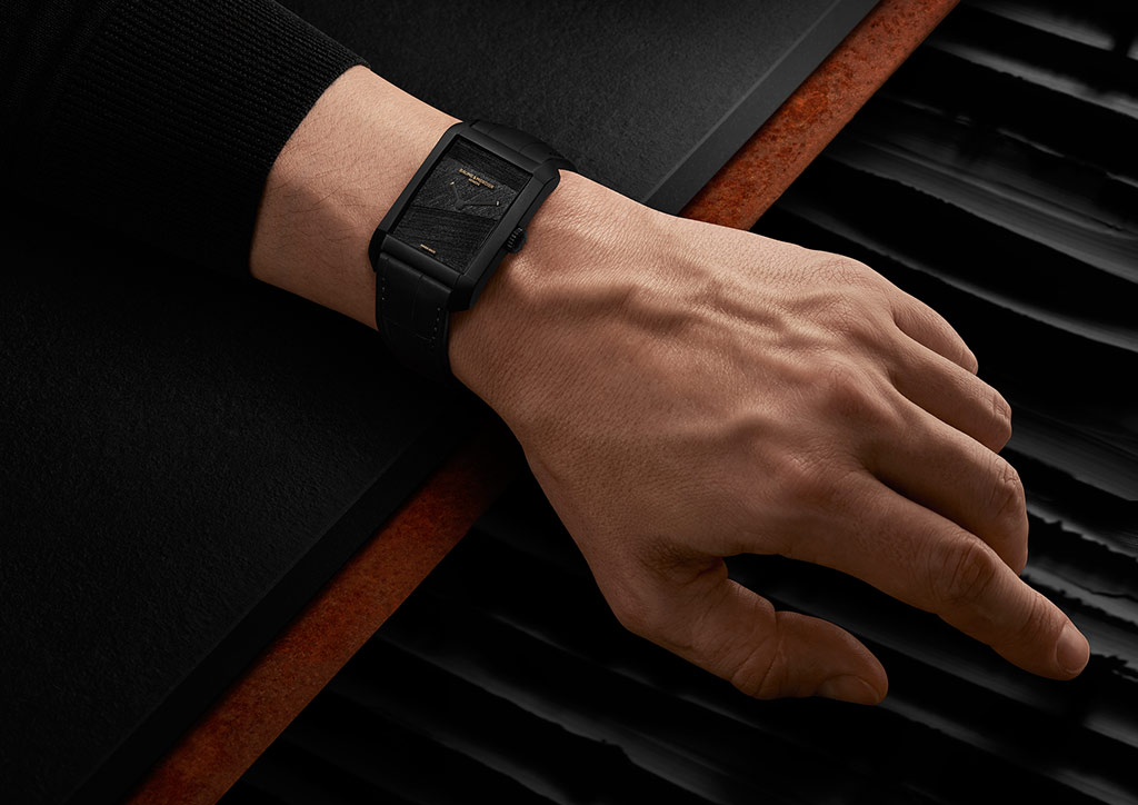 Called the Hampton “Hommage à Pierre Soulages,” the watch is inspired particularly by the artist’s series called Outrenoir, and its representation of the color black.