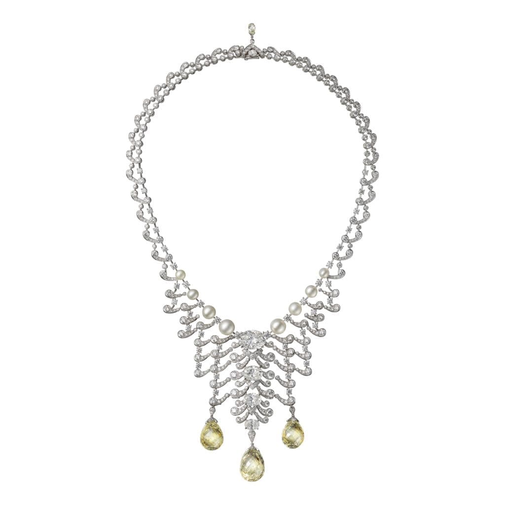 Some of the collection’s standouts are the Cartier Eurythmie bracelet in pink gold with lapis lazuli and diamonds, Cartier Ecume necklace in platinum with diamonds and Fancy Yellow briolette diamonds, and the Cartier Orbite ring in white gold with diamonds and rubies.