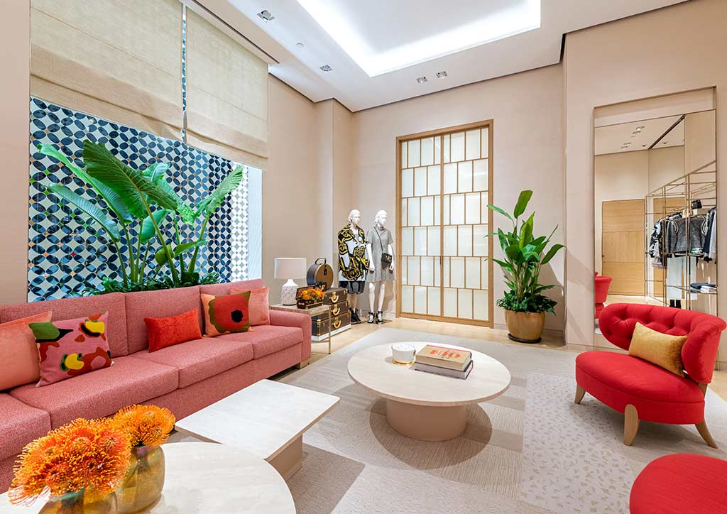 For a peaceful respite, the aforementioned private lounge is designed to host appointments for a highly personalized and exclusive shopping experience. This private lounge, which has its own dressing area, brings tranquility to clients who are presented with key pieces across the Men’s and Women’s Collections.