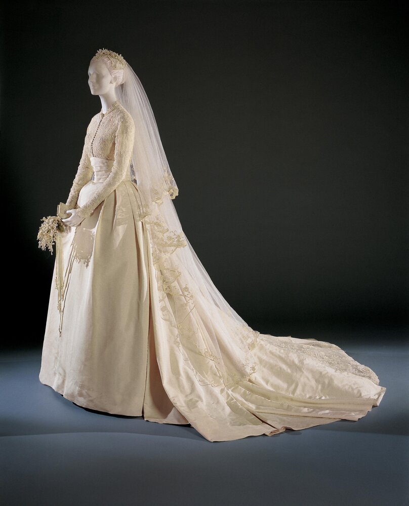 MGM had given the dress as a present to Kelly, with Rose’s costume division putting the dress together. Kept top-secret from the public throughout its construction, the design was shown only on April 17th, two days before the religious wedding.